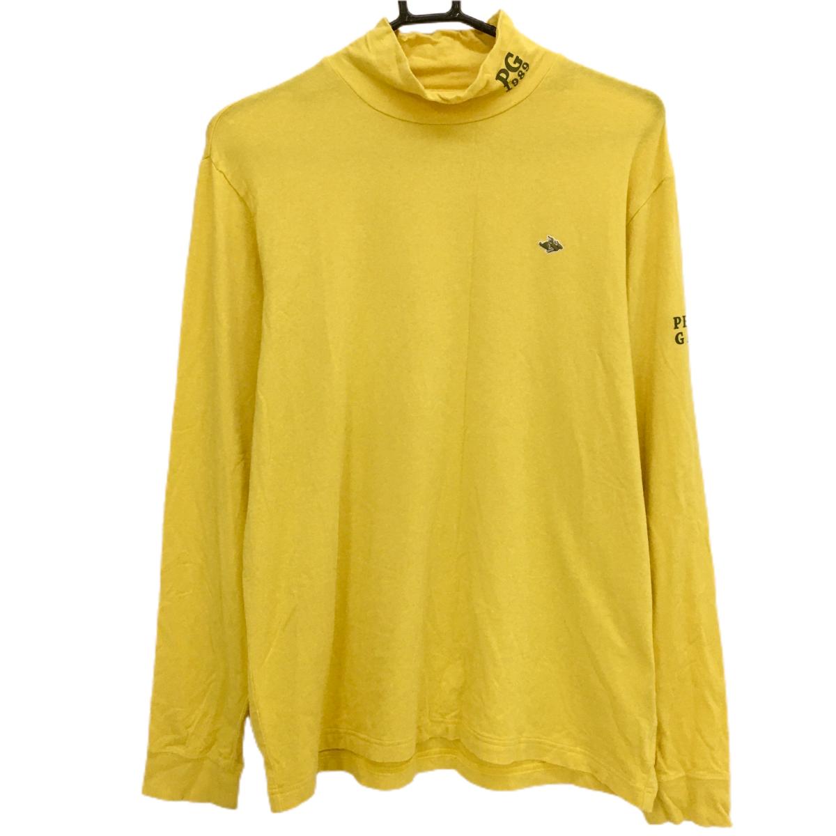 【美品】ルコックゴルフ 長袖ハイネックシャツ イエロー×グリーン フロントロゴ レディース M ゴルフウェア le coq sportif