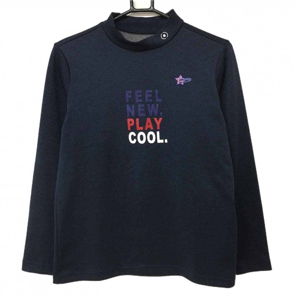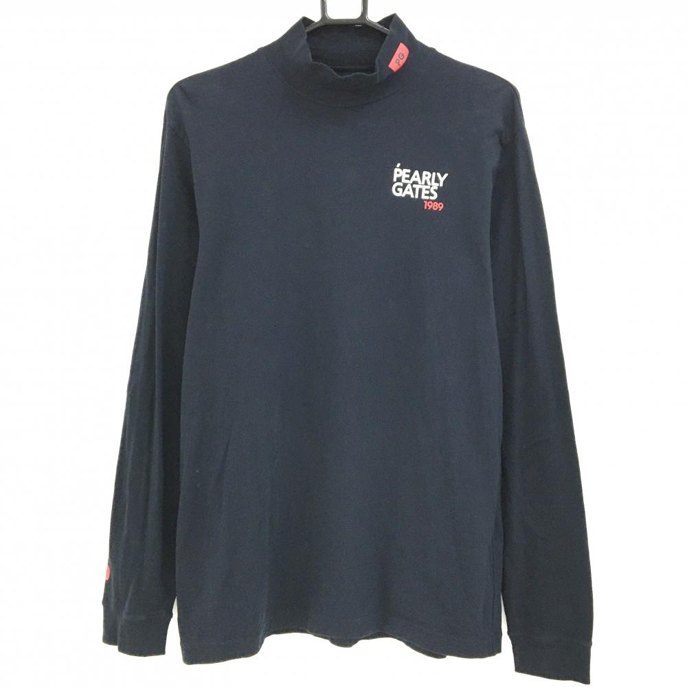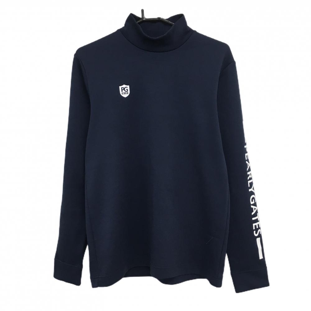 【美品】パーリーゲイツ 長袖ハイネックシャツ ダークネイビー 微起毛素材 レディース 1(M) ゴルフウェア PEARLY GATES