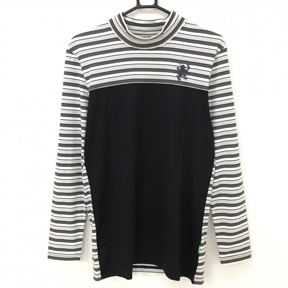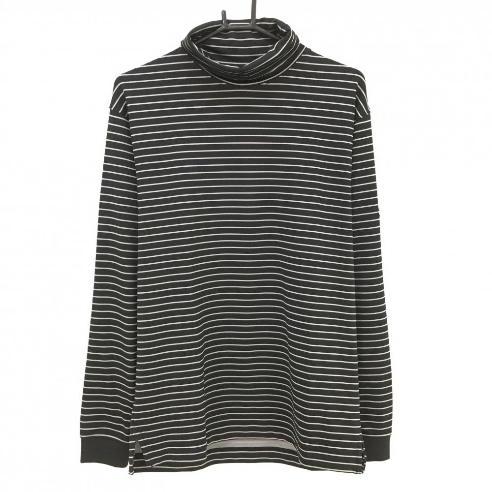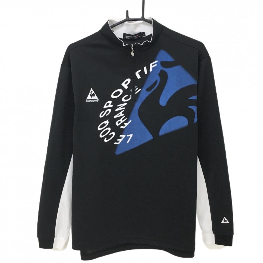 【美品】ルコックゴルフ 長袖ハイネックシャツ 黒×白 ボーダー ハーフジップ メンズ L ゴルフウェア le coq sportif