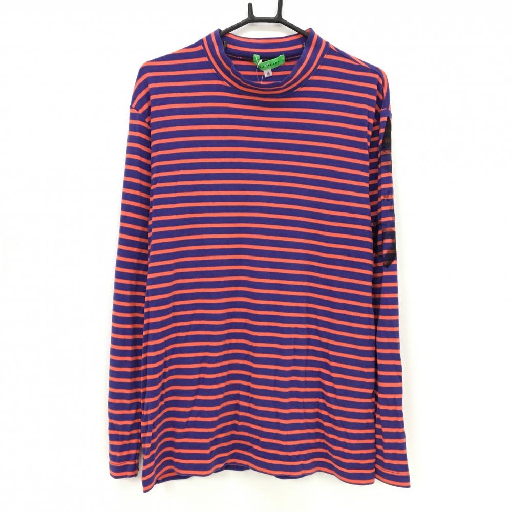 【美品】キスオンザグリーン 長袖ハイネックシャツ オレンジ×黒 ネックロゴ ネック薄汚れ レディース ゴルフウェア kiss on the green