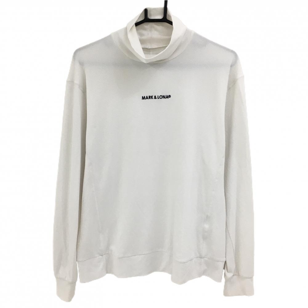 マークアンドロナ 長袖タートルネックシャツ 白 袖ロゴ 起毛素材 レディース M ゴルフウェア MARK&LONA