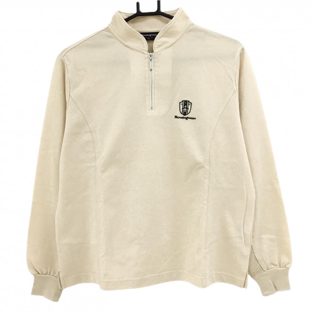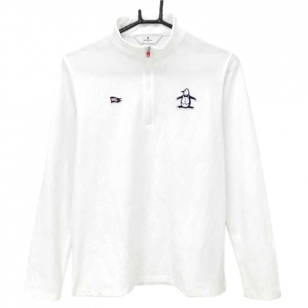 【美品】マンシングウェア 長袖ハイネックシャツ 白×ネイビー ハーフジップ ペンギン刺しゅう レディース M ゴルフウェア Munsingwear