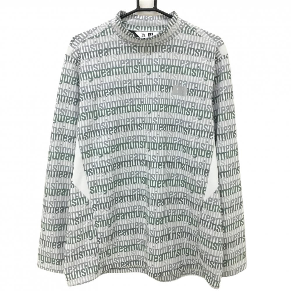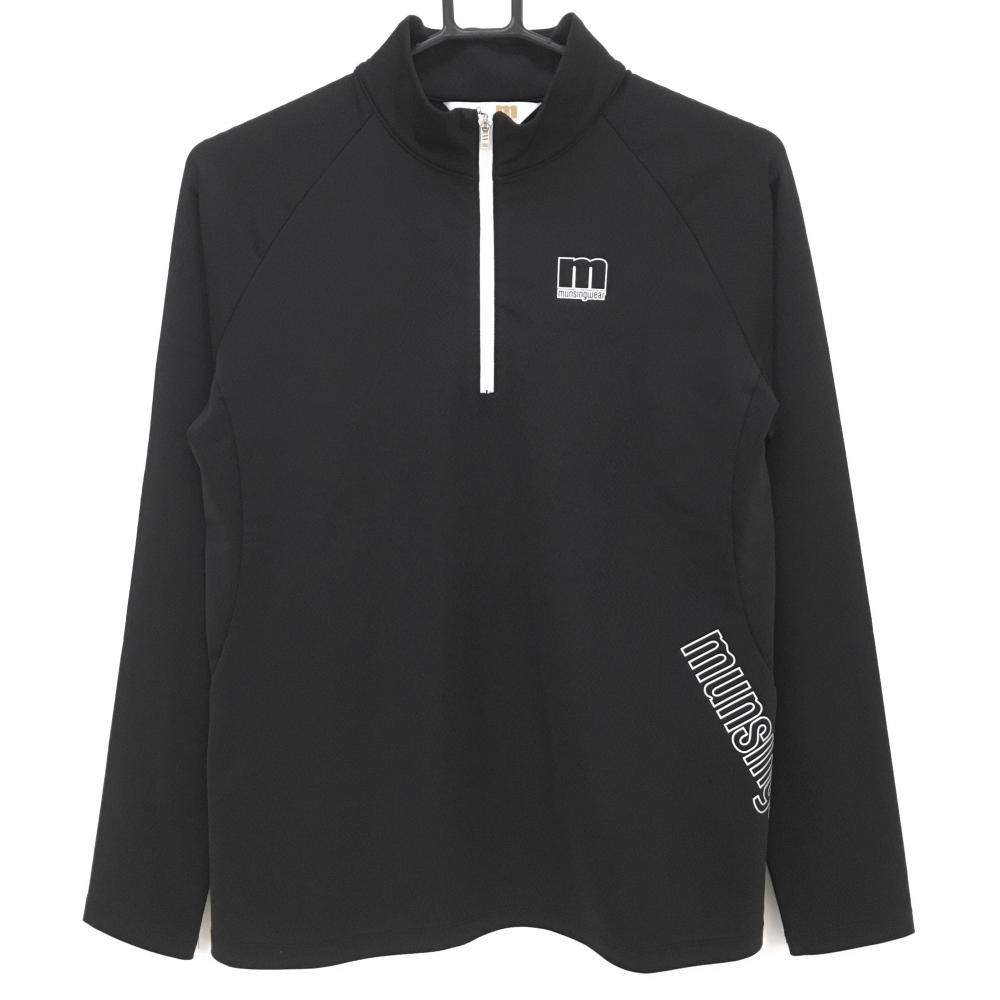 マンシングウェア 長袖ハイネックシャツ グレージュ×黒 ボーダー ハーフジップ 微起毛 レディース L ゴルフウェア Munsingwear