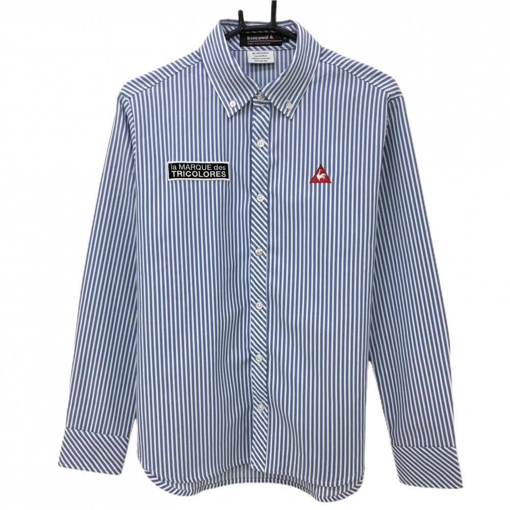 【超美品】ルコックゴルフ 長袖シャツ ブルー ロゴ白 胸ポケット ボタンダウン メンズ M ゴルフウェア le coq sportif