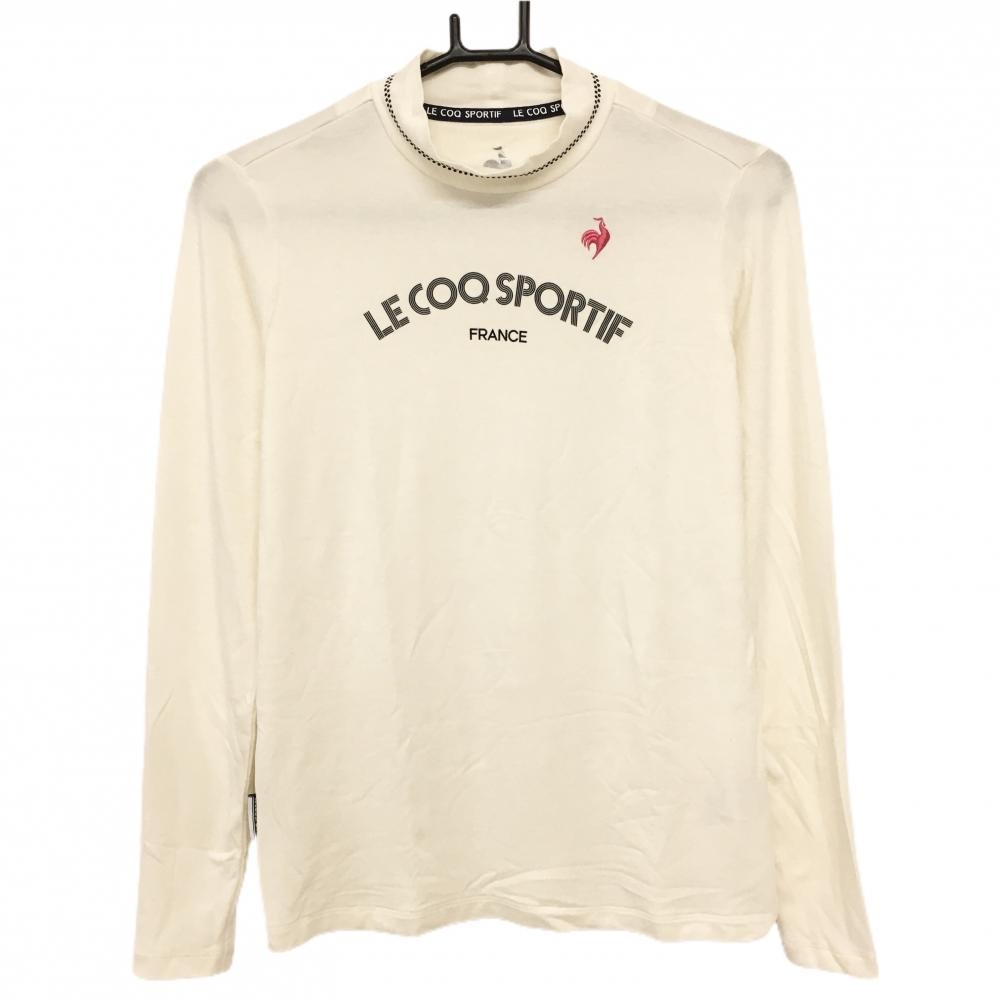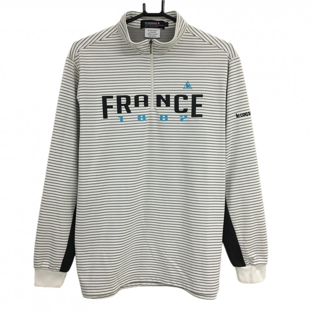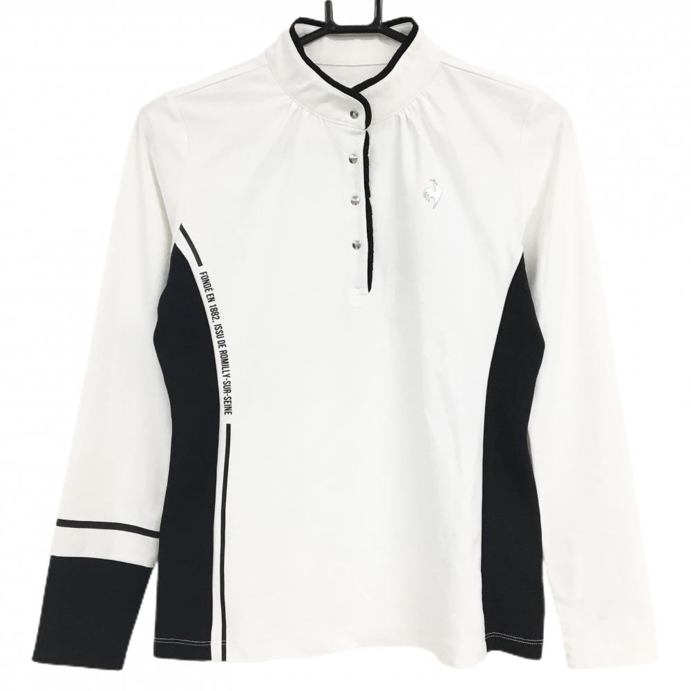 ルコック 長袖ハイネックシャツ 白×黒 袖ライン ロゴプリント ハーフジップ レディース LL ゴルフウェア le coq sportif