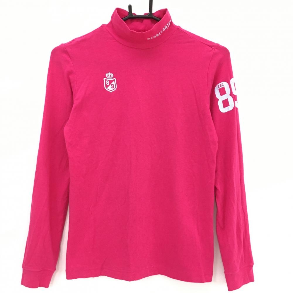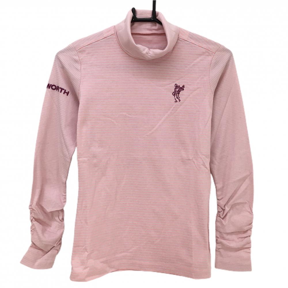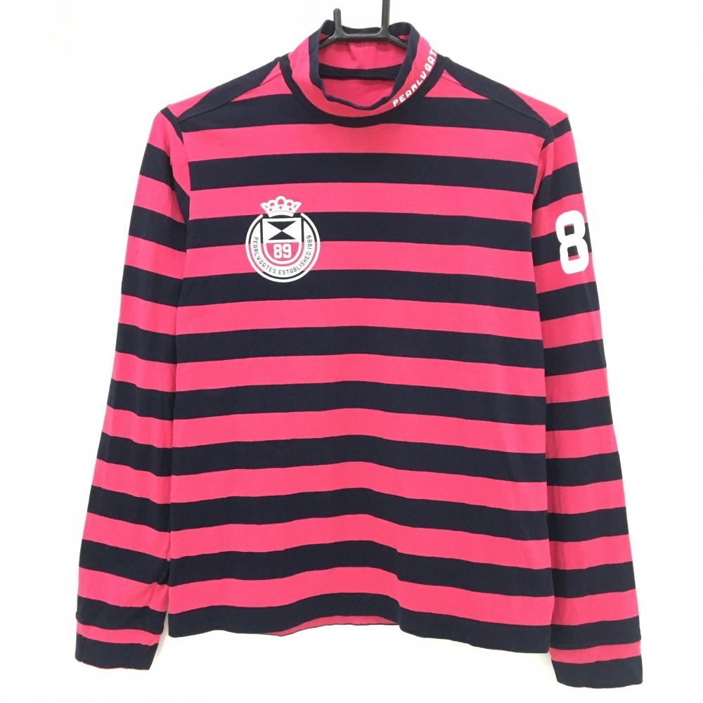 パーリーゲイツ 長袖ハイネックシャツ ピンク×白 ボーダー レディース 1(M) ゴルフウェア PEARLY GATES