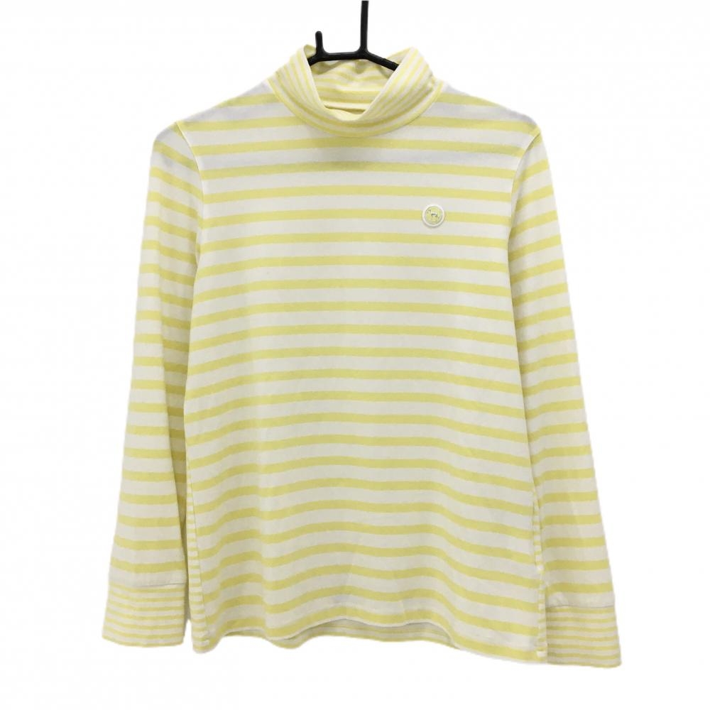 【超美品】アンパスィ 長袖ハイネックシャツ ライトグレー×イエロー ボーダー ネックロゴワッペン レディース M ゴルフウェア and per se