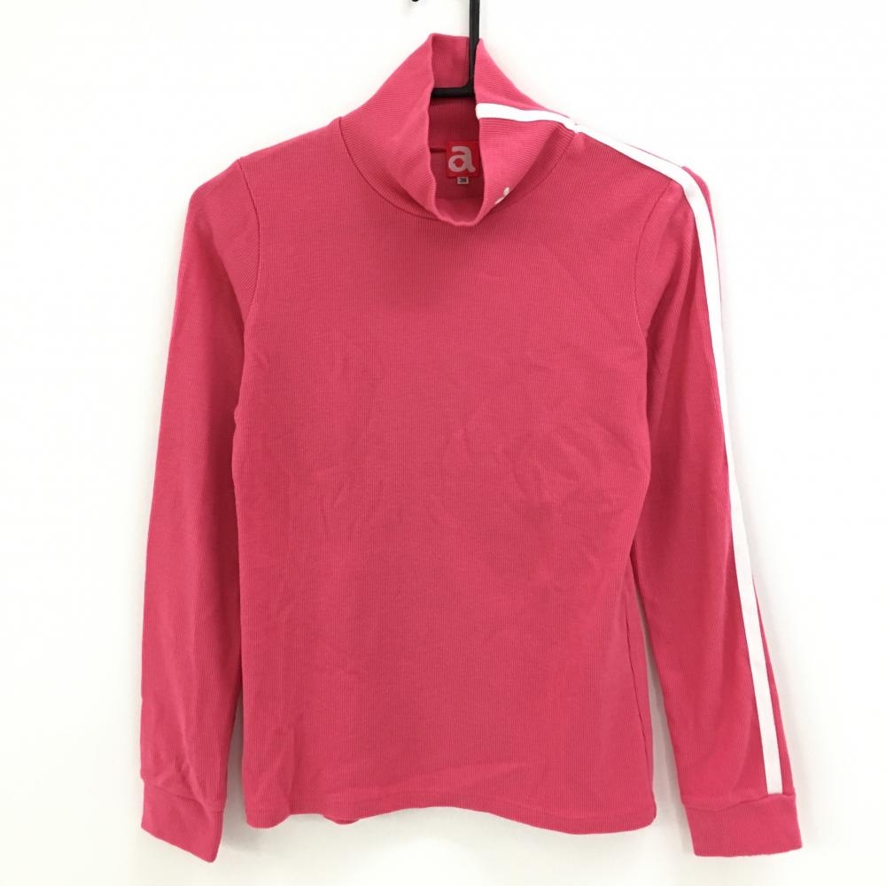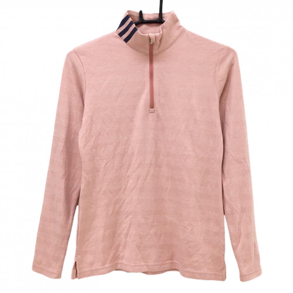 【超美品】アディダス 長袖タートルネックシャツ サーモンピンク ネック3ライン 前身頃中綿 レディース M ゴルフウェア adidas