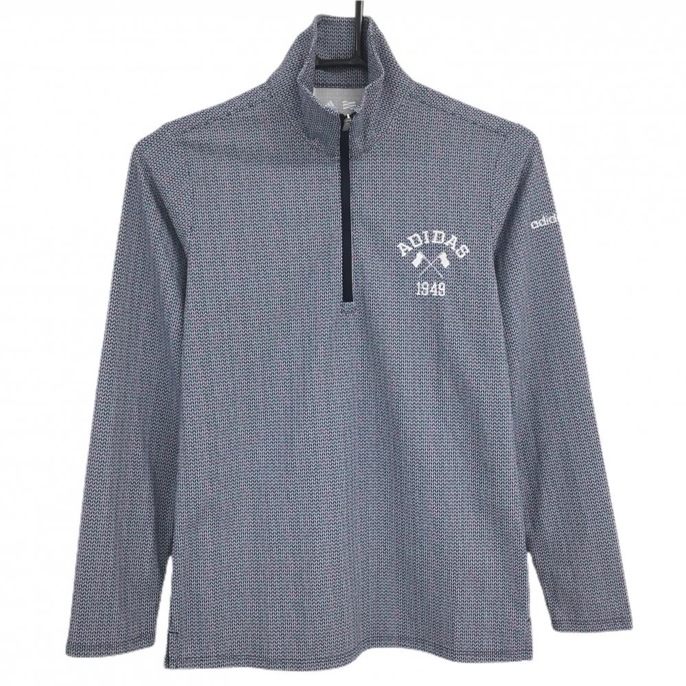 アディダス 長袖ハイネックシャツ 白×グレー メッシュ調 切替 ハーフジップ 裾ドローコード メンズ XL ゴルフウェア adidas