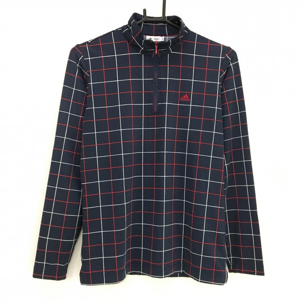 【超美品】アディダス 長袖ハイネックシャツ ネイビー×白 袖ロゴプリント メンズ M ゴルフウェア 2024年モデル adidas