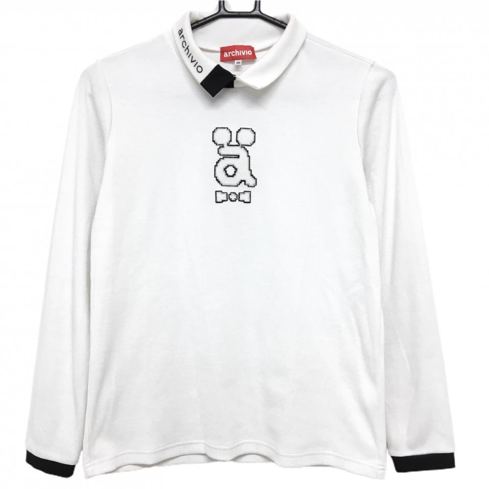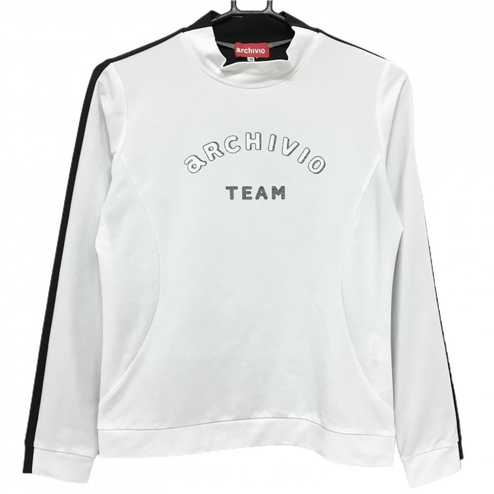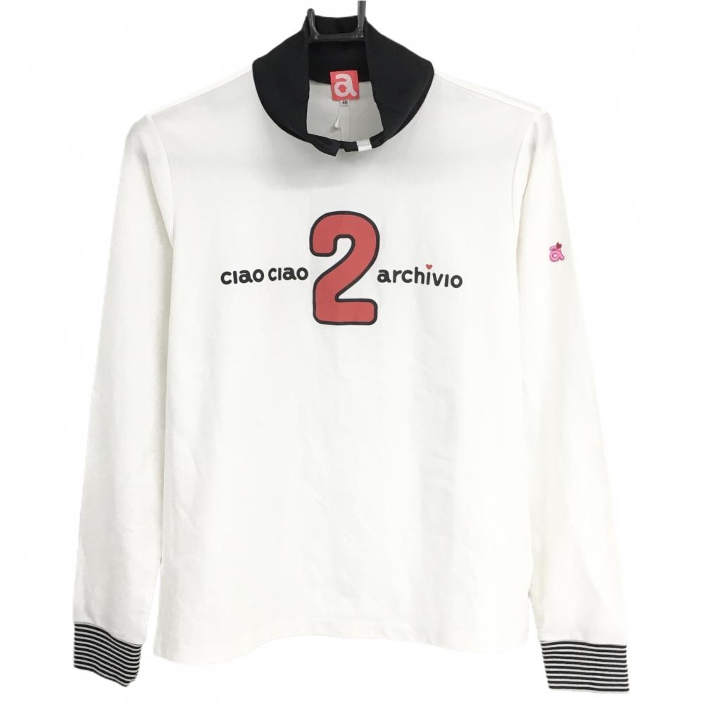 【美品】アルチビオ 長袖ハイネックシャツ 黒 袖ロゴシルバー レディース 38(M) ゴルフウェア archivio