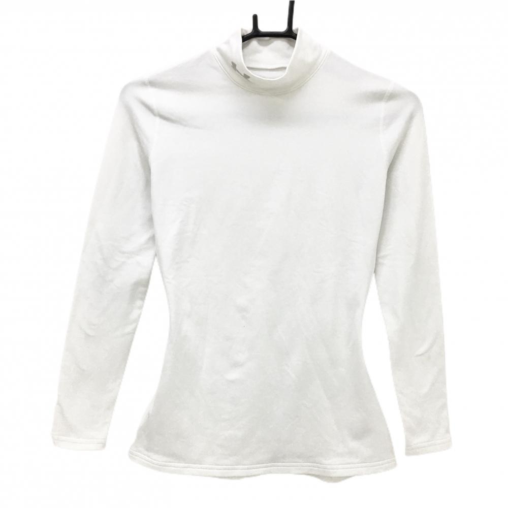 【超美品】デサントゴルフ 長袖ハイネックシャツ 白 ロゴ黒 インナーシャツ 中田英寿 レディース S ゴルフウェア DESCENTE