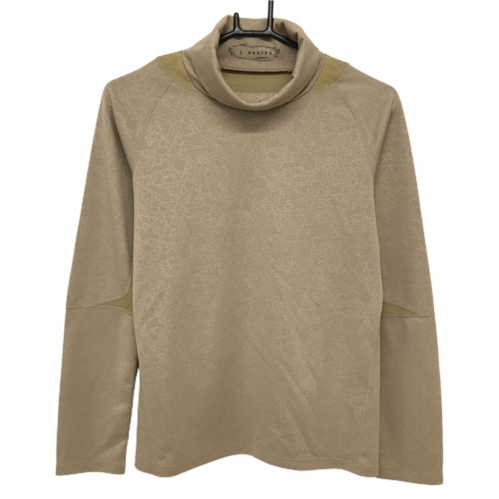 【美品】オークリー 長袖ハイネックシャツ ライトブラウン系 総柄地模様 ハーフジップ 胸ロゴ メンズ L ゴルフウェア Oakley