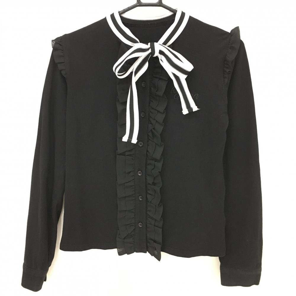 【超美品】カステルバジャック 長袖シャツ 黒×グレー 前身頃総柄 レディース 44(XL) ゴルフウェア CASTELBAJAC