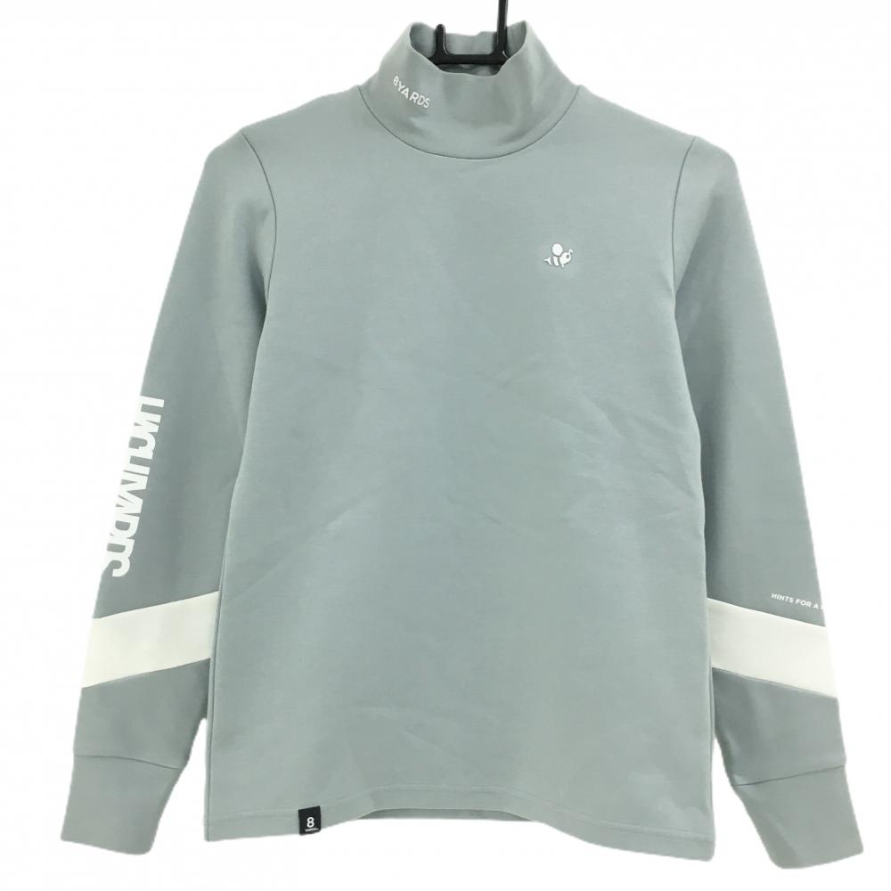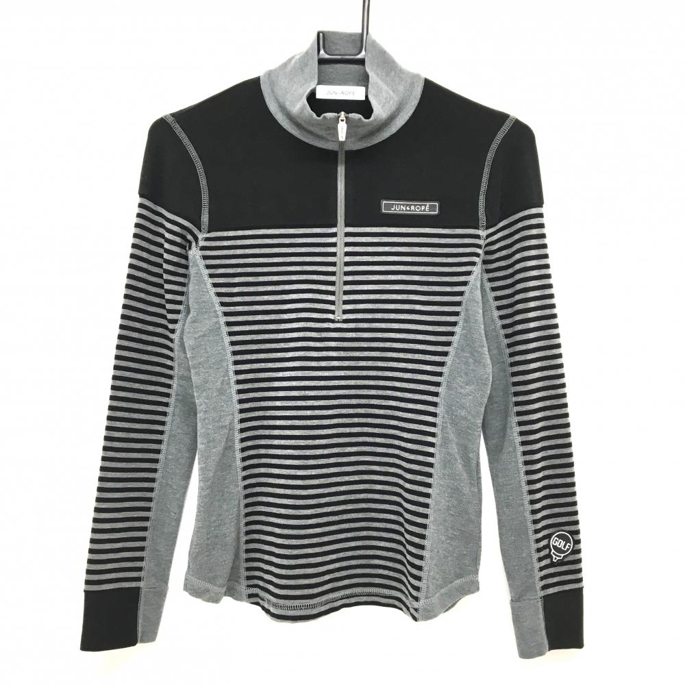 【超美品】ジュンアンドロペ 長袖ハイネックシャツ ライトグレー×ネイビー ネックサイドギャザー レディース S ゴルフウェア JUN&ROPE