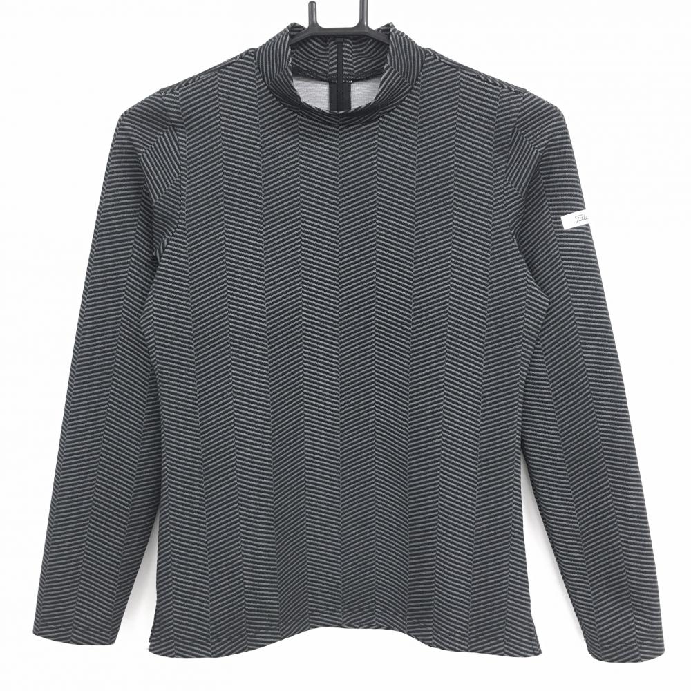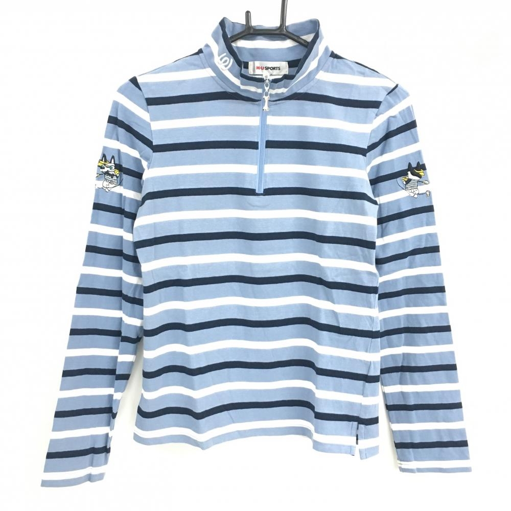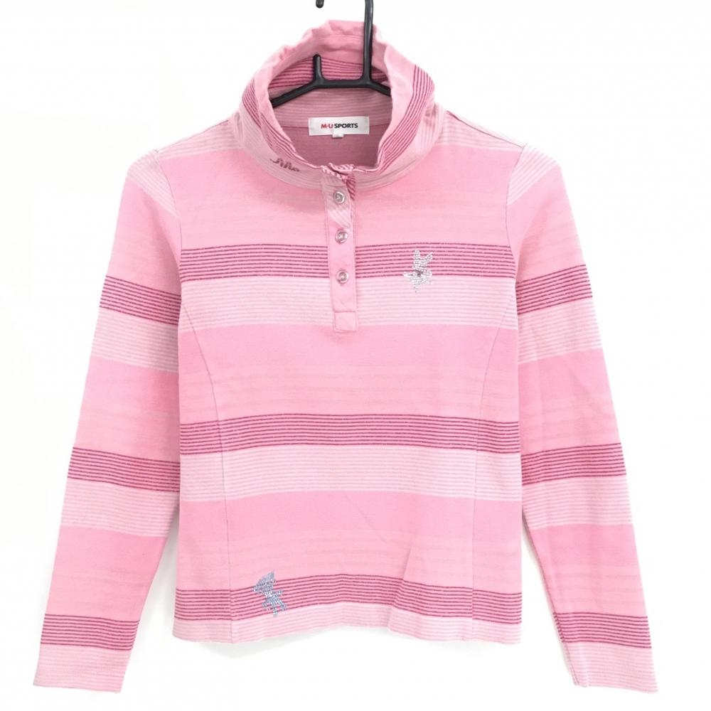 【超美品】MUスポーツ 長袖ハイネックシャツ ダークグレー×黒 なみなみボーダー レディース 40(M) ゴルフウェア 2025年モデル M・U SPORTS