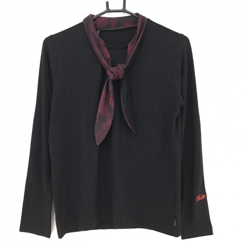パーリーゲイツ 長袖ハイネックシャツ 黒×レッド ボーダー レディース 2(L) ゴルフウェア PEARLY GATES