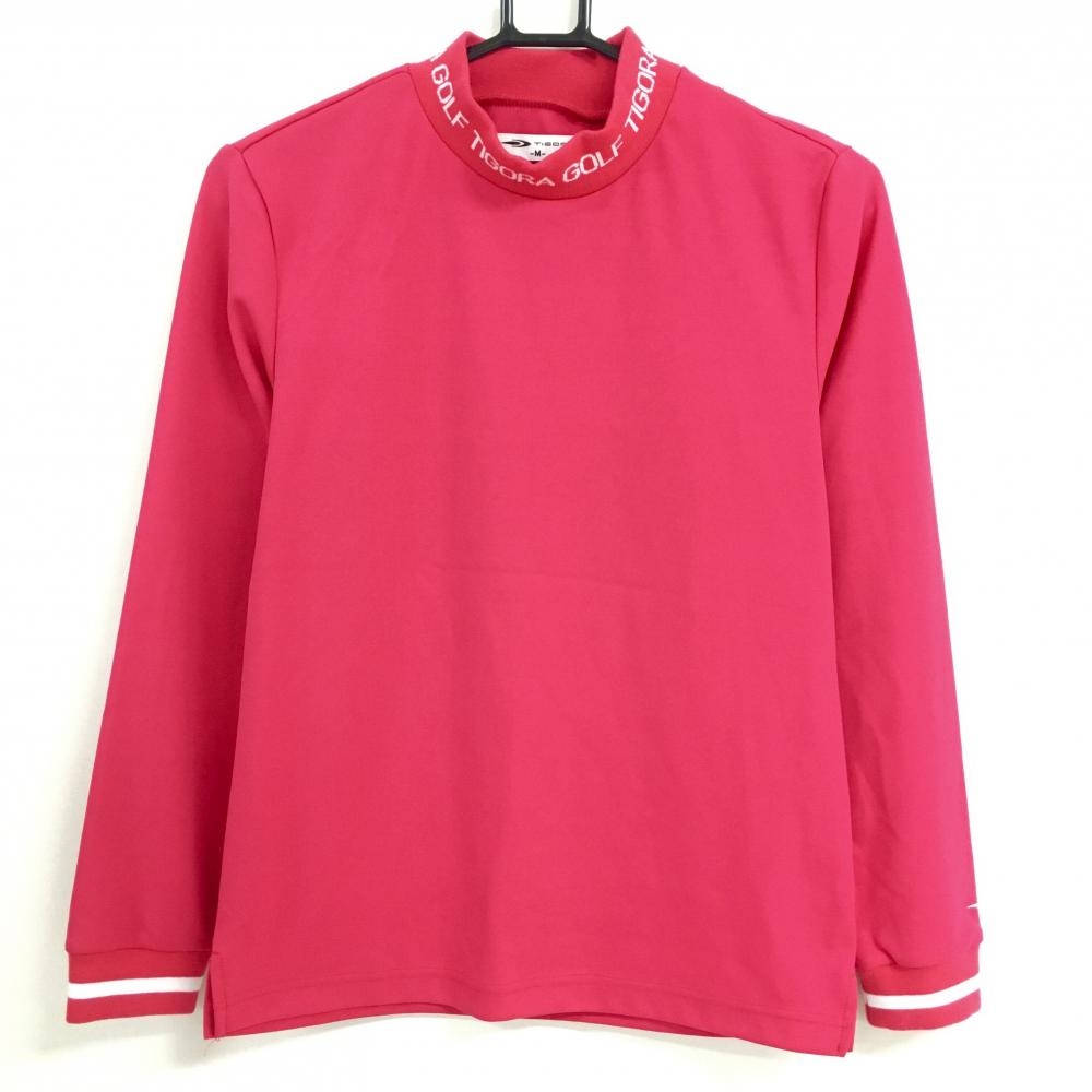 【超美品】ルコックゴルフ 長袖ハイネックシャツ サーモンピンク×白 フロントロゴ レディース M ゴルフウェア le coq sportif