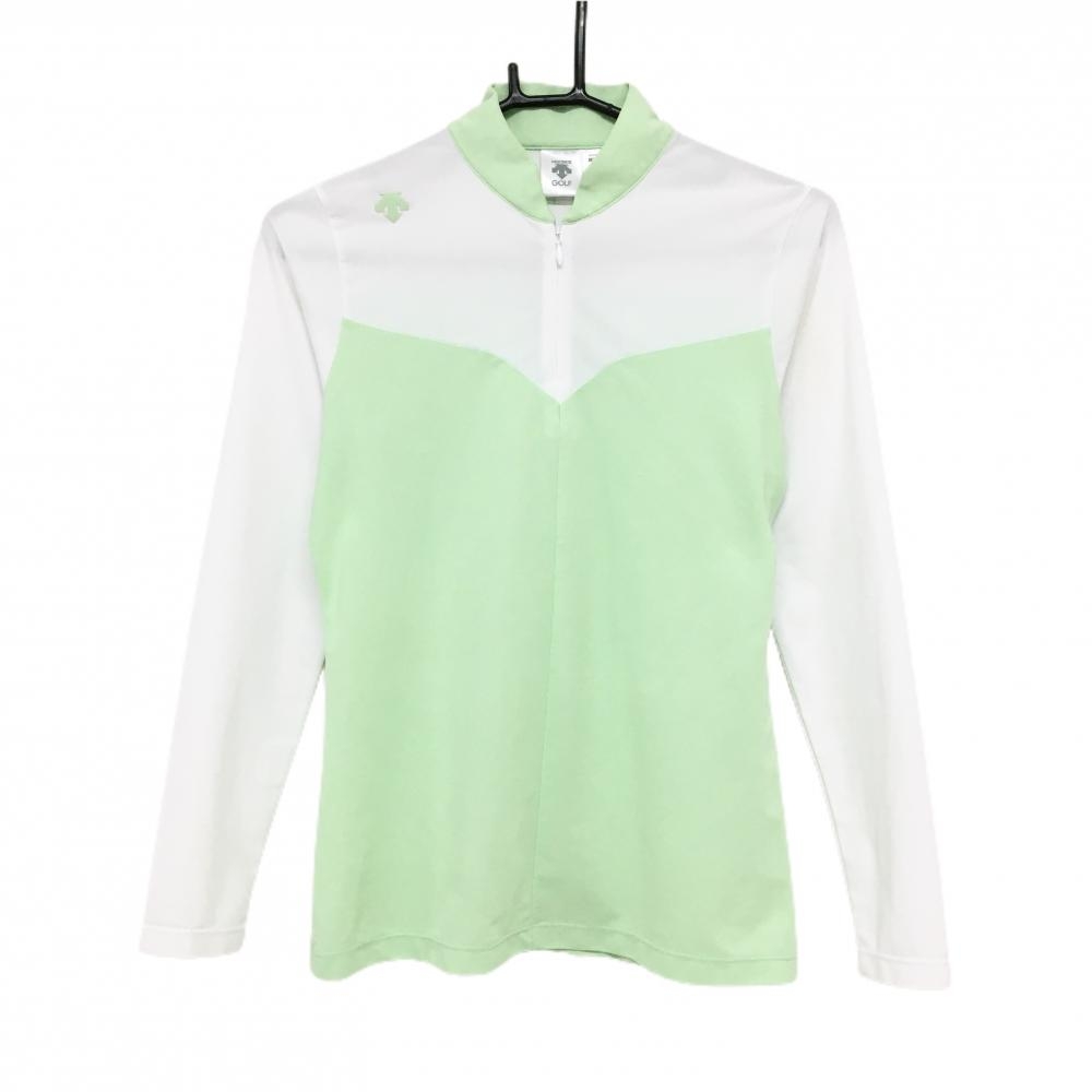 【超美品】デサントゴルフ 長袖ハイネックシャツ 白×ダークグリーン バイカラー レディース M ゴルフウェア 2023年モデル DESCENTE