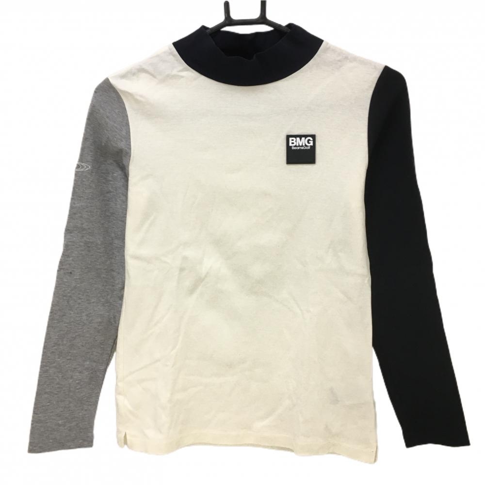 【超美品】ビームスゴルフ 長袖ハイネックシャツ 杢グレー×白×黒 フロントロゴ メンズ L ゴルフウェア 2024年モデル BEAMS GOLF