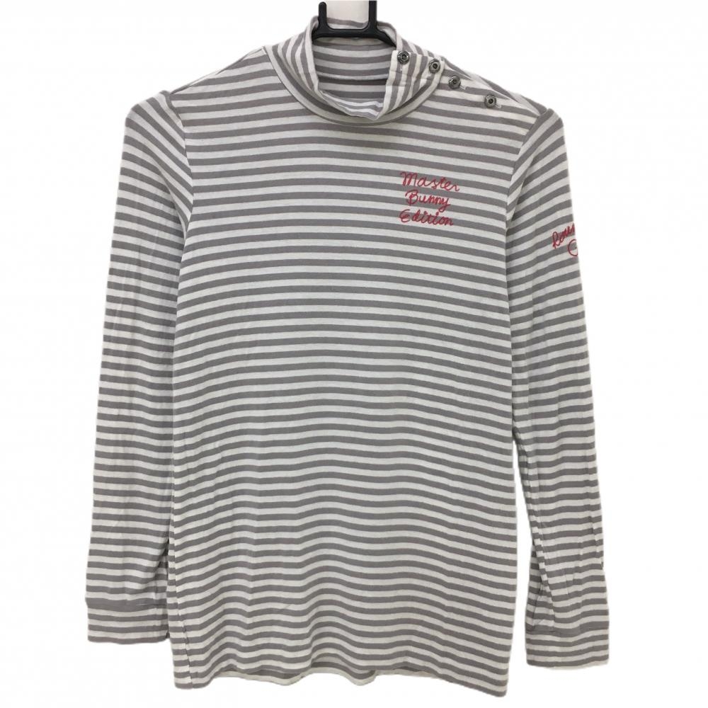 マスターバニー 長袖ハイネックシャツ 白×ダークネイビー ボーダー レディース 2(L) ゴルフウェア MASTER BUNNY EDITION