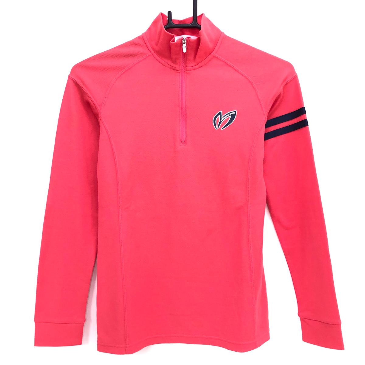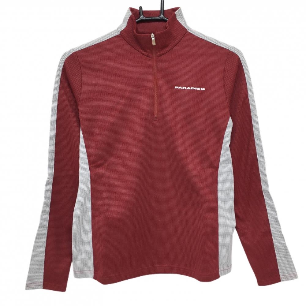 【美品】パーリーゲイツ 長袖ハイネックシャツ レッド系 表微起毛 ハーフジップ レディース 2(L) ゴルフウェア PEARLY GATES