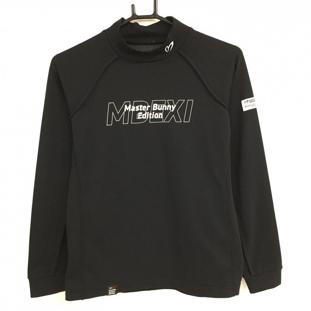 【新品】マスターバニー 長袖ハイネックシャツ 黒×白 フロントロゴ 裏起毛 レディース 1(M) ゴルフウェア MASTER BUNNY EDITION