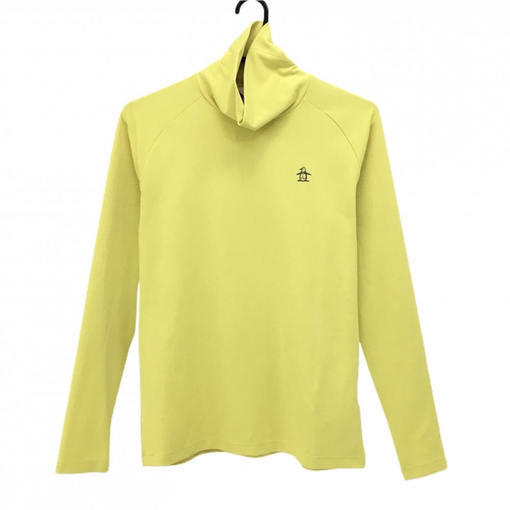 【超美品】マンシングウェア 長袖ハイネックシャツ イエローグリーン×白 ハーフジップ レディース M ゴルフウェア Munsingwear
