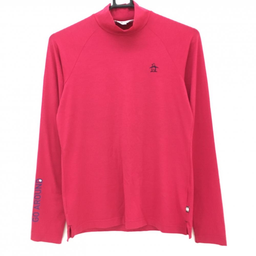 【美品】バーバリーゴルフ 長袖ハイネックシャツ レッド 無地 袖ロゴ レディース M ゴルフウェア BURBERRY GOLF