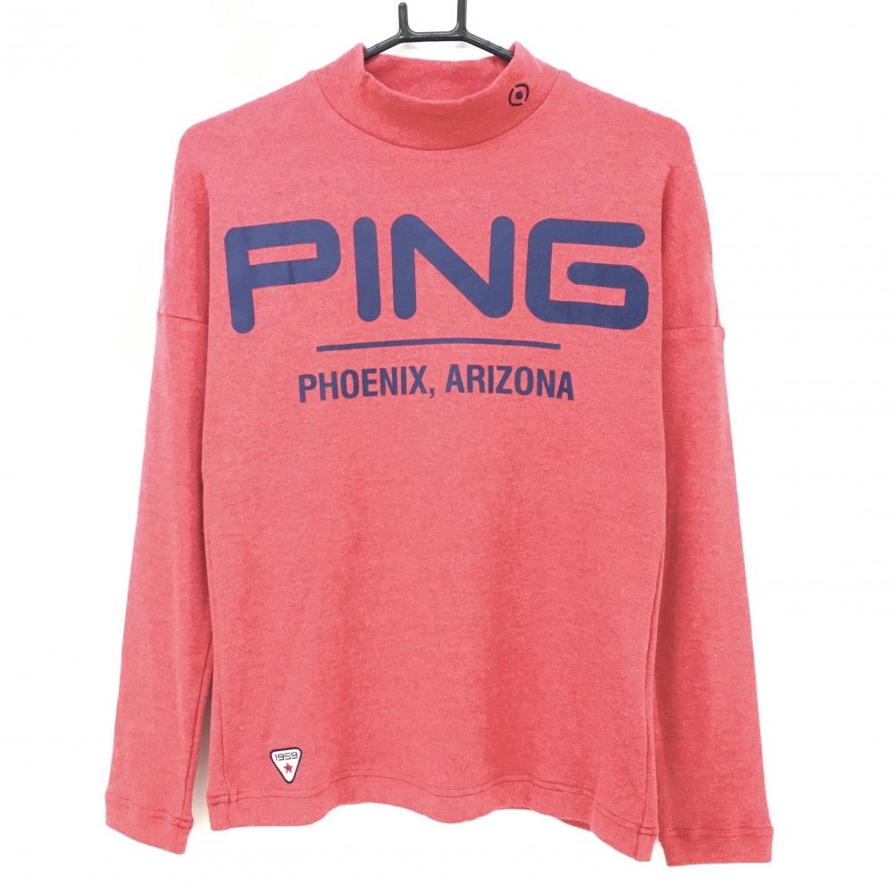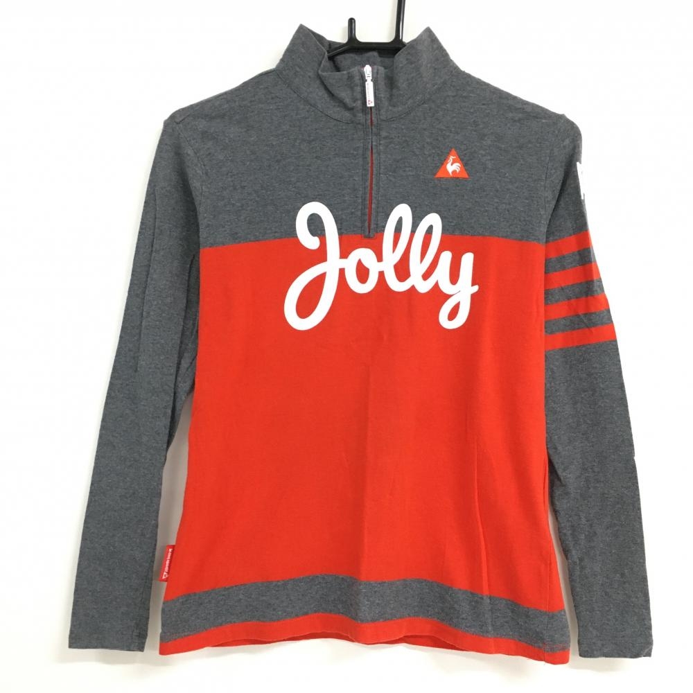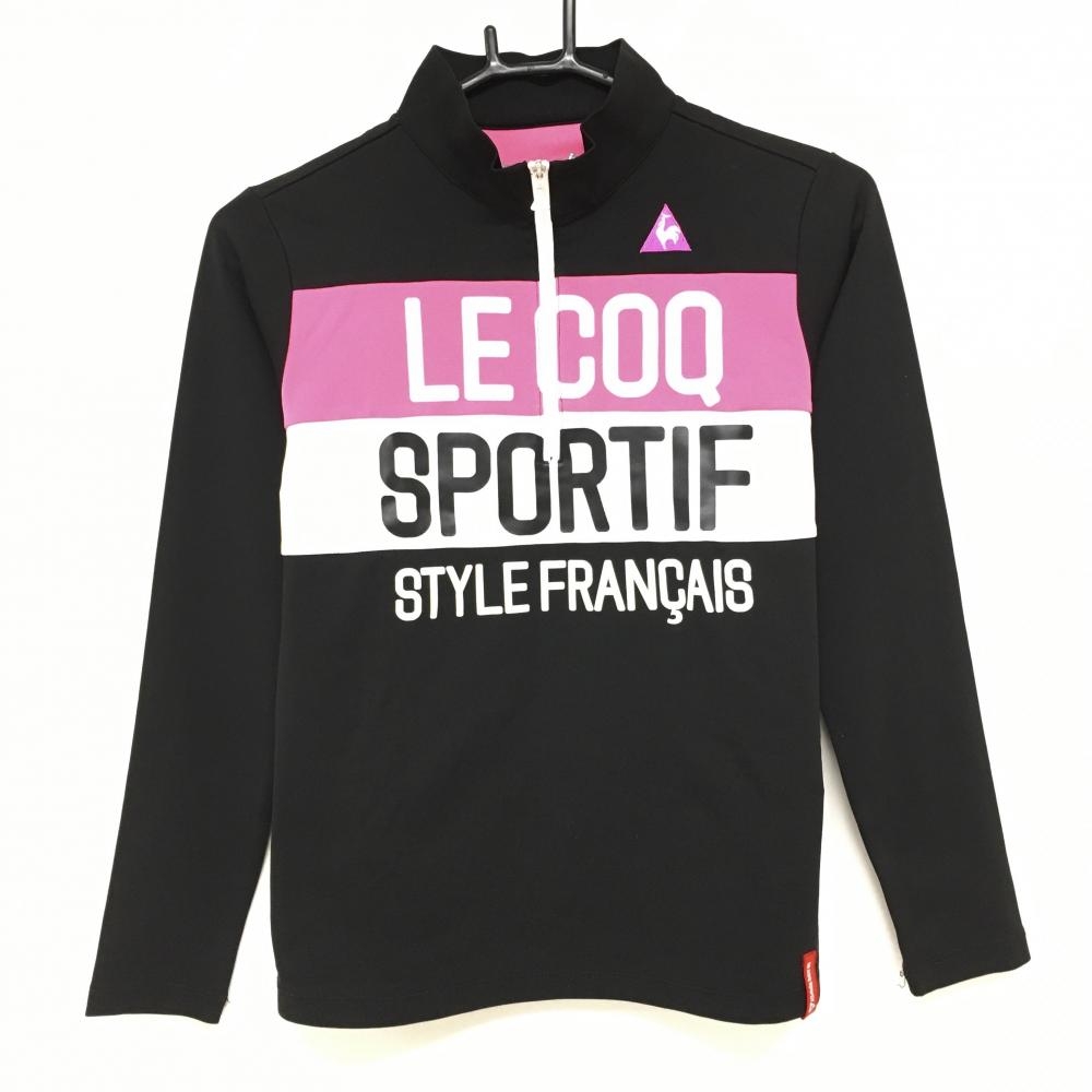 【超美品】ルコックゴルフ 長袖ハイネックシャツ サーモンピンク系×黒 フロントロゴプリント レディース M ゴルフウェア le coq sportif