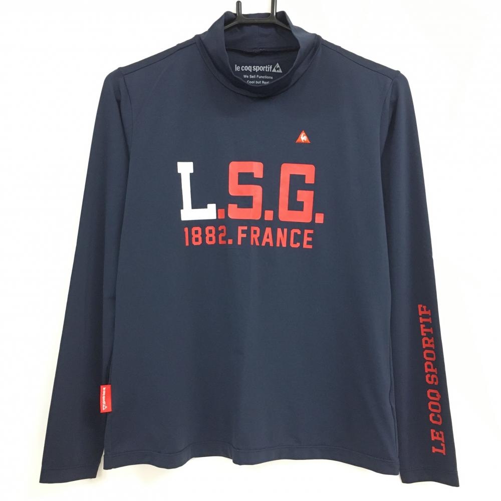 ルコックゴルフ 長袖ハイネックシャツ ネイビー×白 微起毛 ロゴ刺しゅう レディース M ゴルフウェア le coq sportif