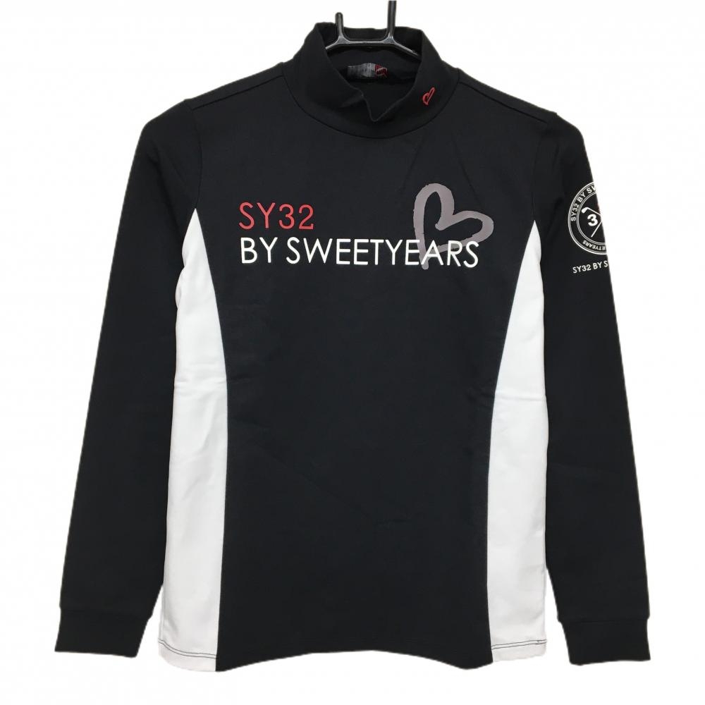 デサントゴルフ 長袖ハイネックシャツ 黒×白 胸元ロゴ 中田英寿 レディース M ゴルフウェア DESCENTE