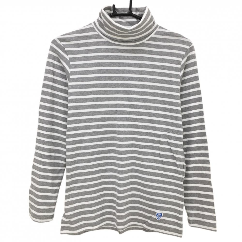 【美品】プーマ 長袖ハイネックシャツ 白×グレー ボーダー レディース L ゴルフウェア PUMA