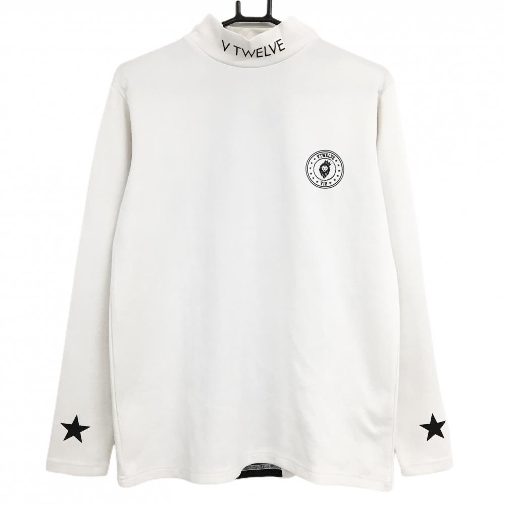 【美品】V12 LUX 長袖ハイネックシャツ 白系×黒 裏微起毛 ロゴプリント レディース 0(S) ゴルフウェア V12