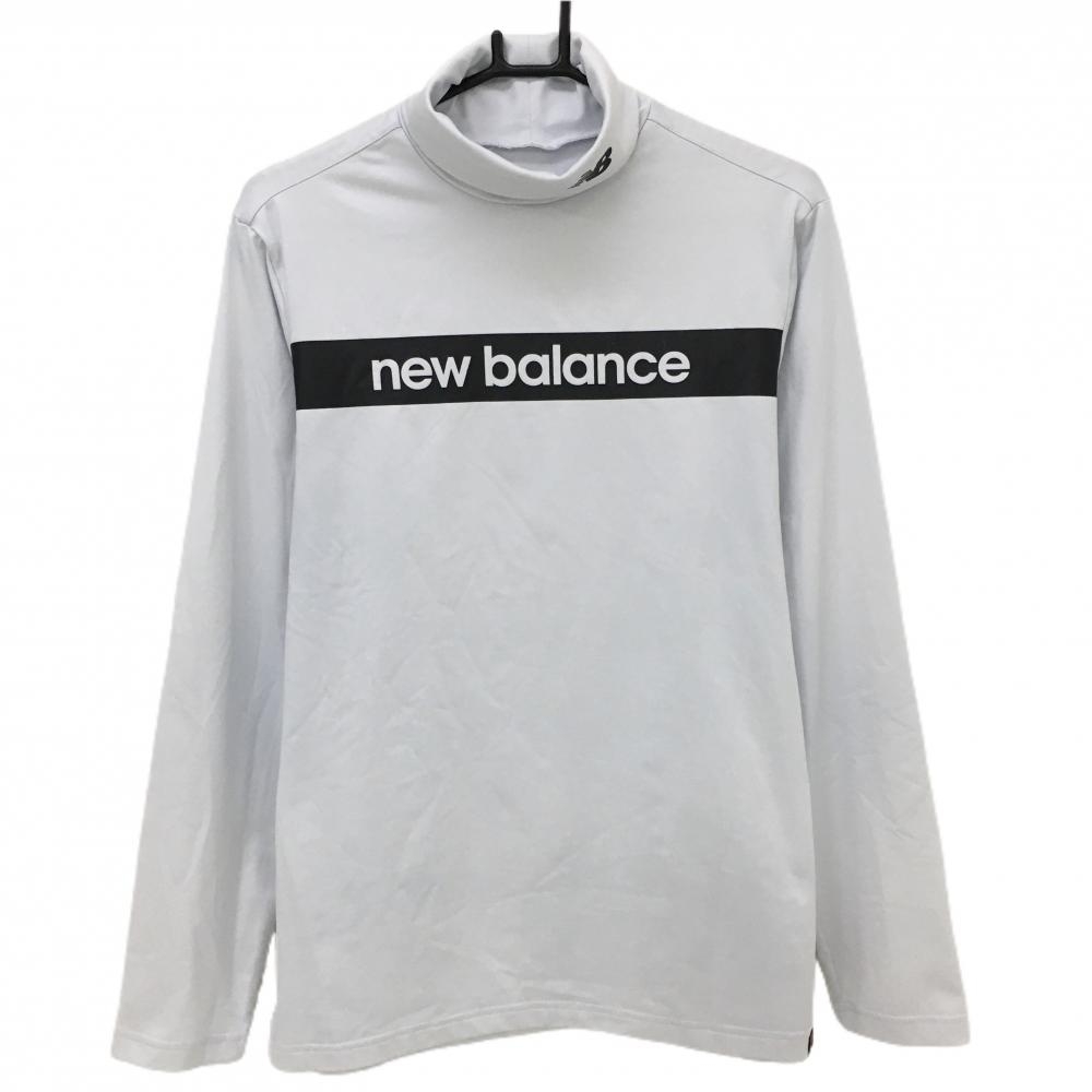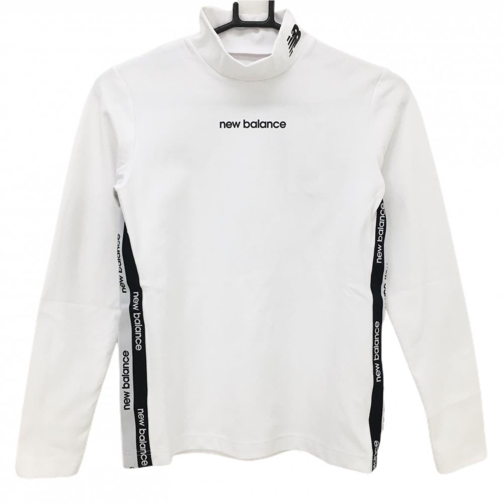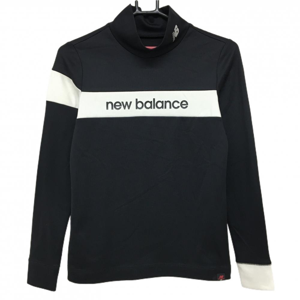 【美品】ニューバランス 長袖ハイネックシャツ 黒×シルバー ネックロゴ レディース 2(L) ゴルフウェア New Balance