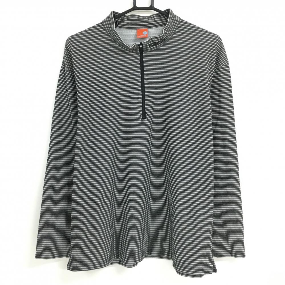 【超美品】アディダス 長袖ハイネックシャツ 黒×グレー ボーダー ハーフジップ メンズ O/XG ゴルフウェア adidas