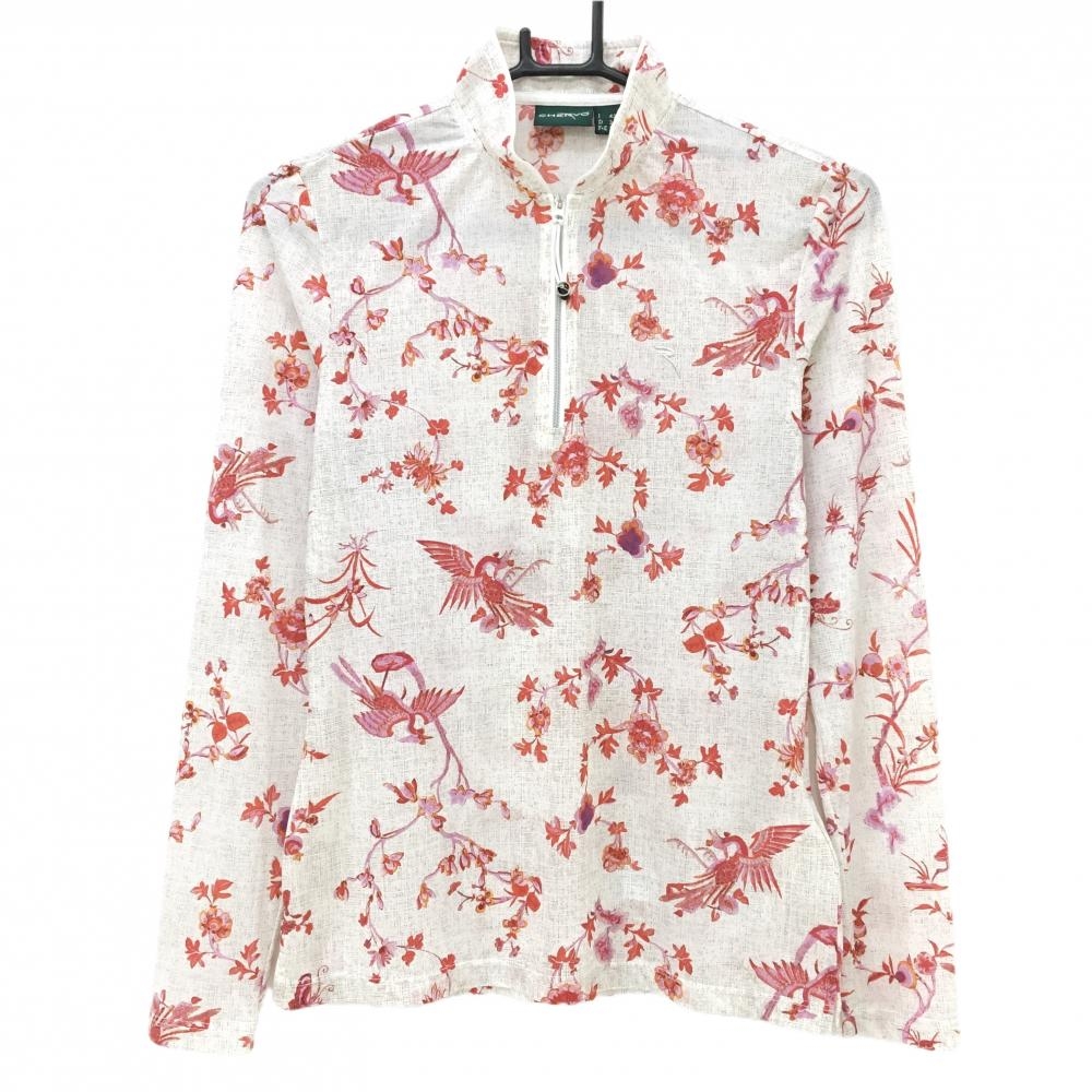ゾーイ 長袖ハイネックシャツ 白×ピンク×ネイビー 総柄 胸ロゴ レディース M ゴルフウェア ZOY