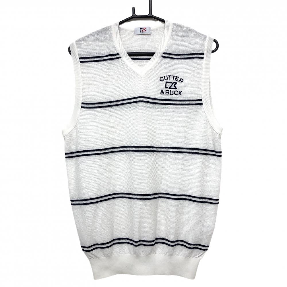 タイトリスト ニットベスト 白×ネイビー メルセデスベンツ コットン混 メンズ L ゴルフウェア TITLEIST