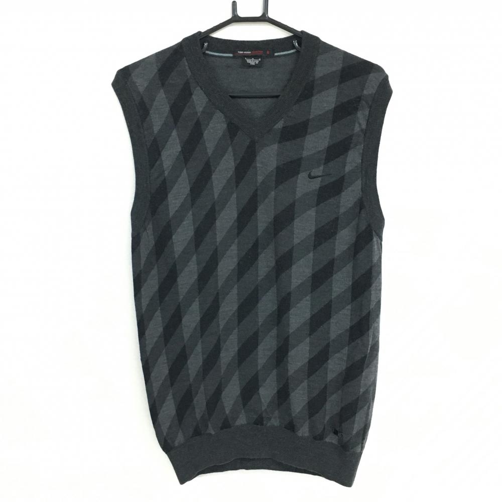 【超美品】ナイキゴルフ アウターベスト グレー×黒 Vネック 裏地メッシュ CLIMA-FIT メンズ LGG ゴルフウェア NIKE