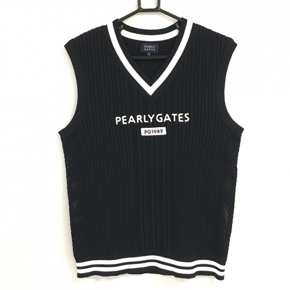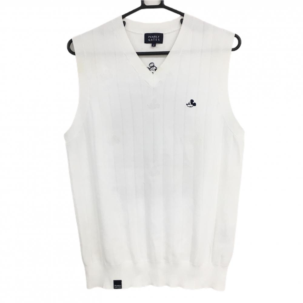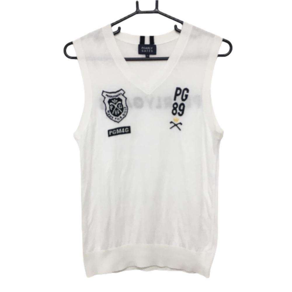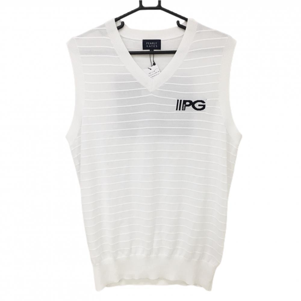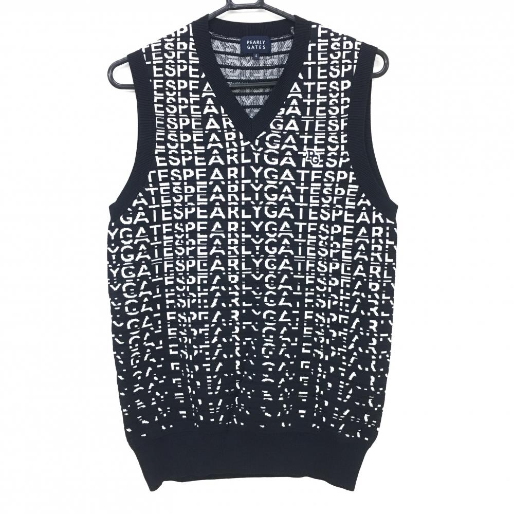 【美品】パーリーゲイツ ニットベスト 白×黒 ビッグロゴ Vネック メンズ 4(M) ゴルフウェア PEARLY GATES