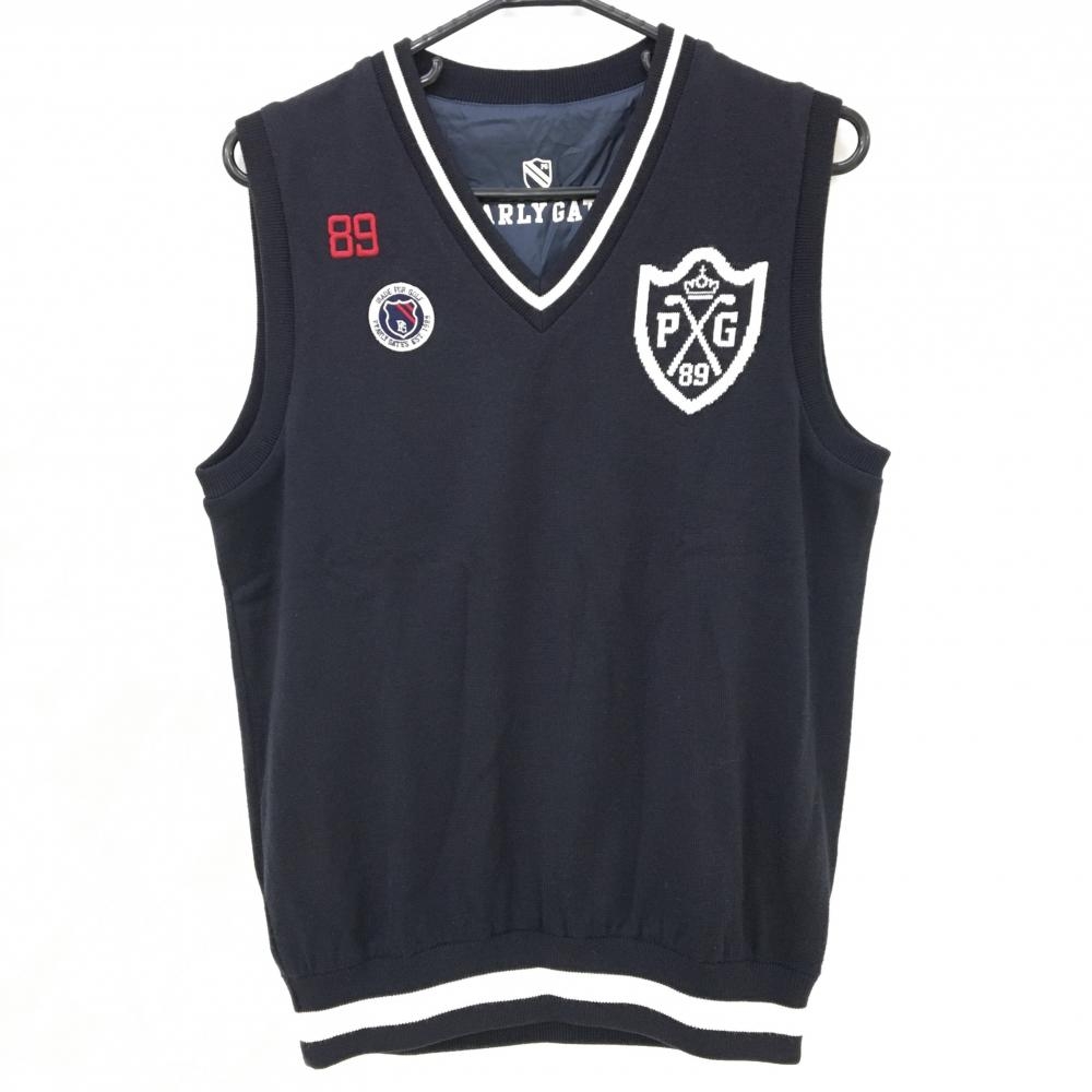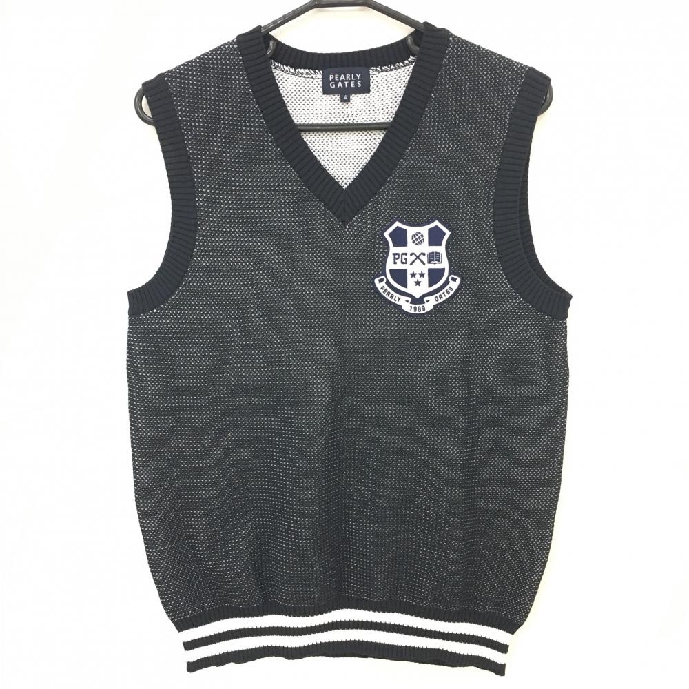 【超美品】パーリーゲイツ ニットベスト ネイビー×白 王冠 メンズ 5(L) ゴルフウェア PEARLY GATES