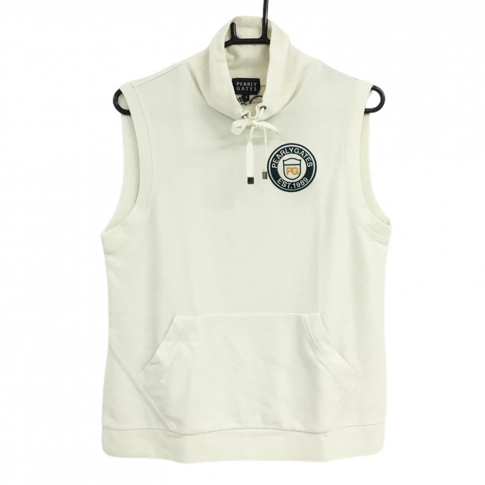 【美品】パーリーゲイツ ハイネックニットベスト アイボリー×ネイビー ボーダー ハーフジップ レディース 1(M) ゴルフウェア PEARLY GATES