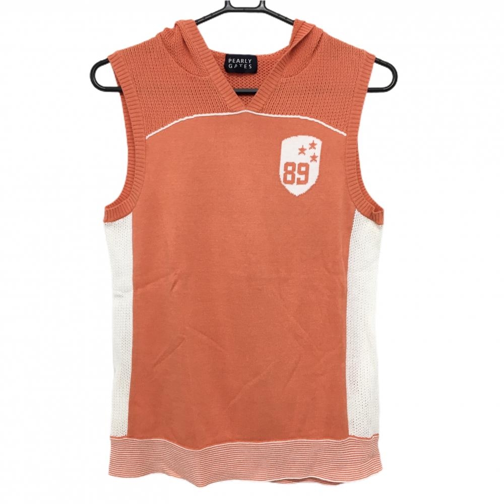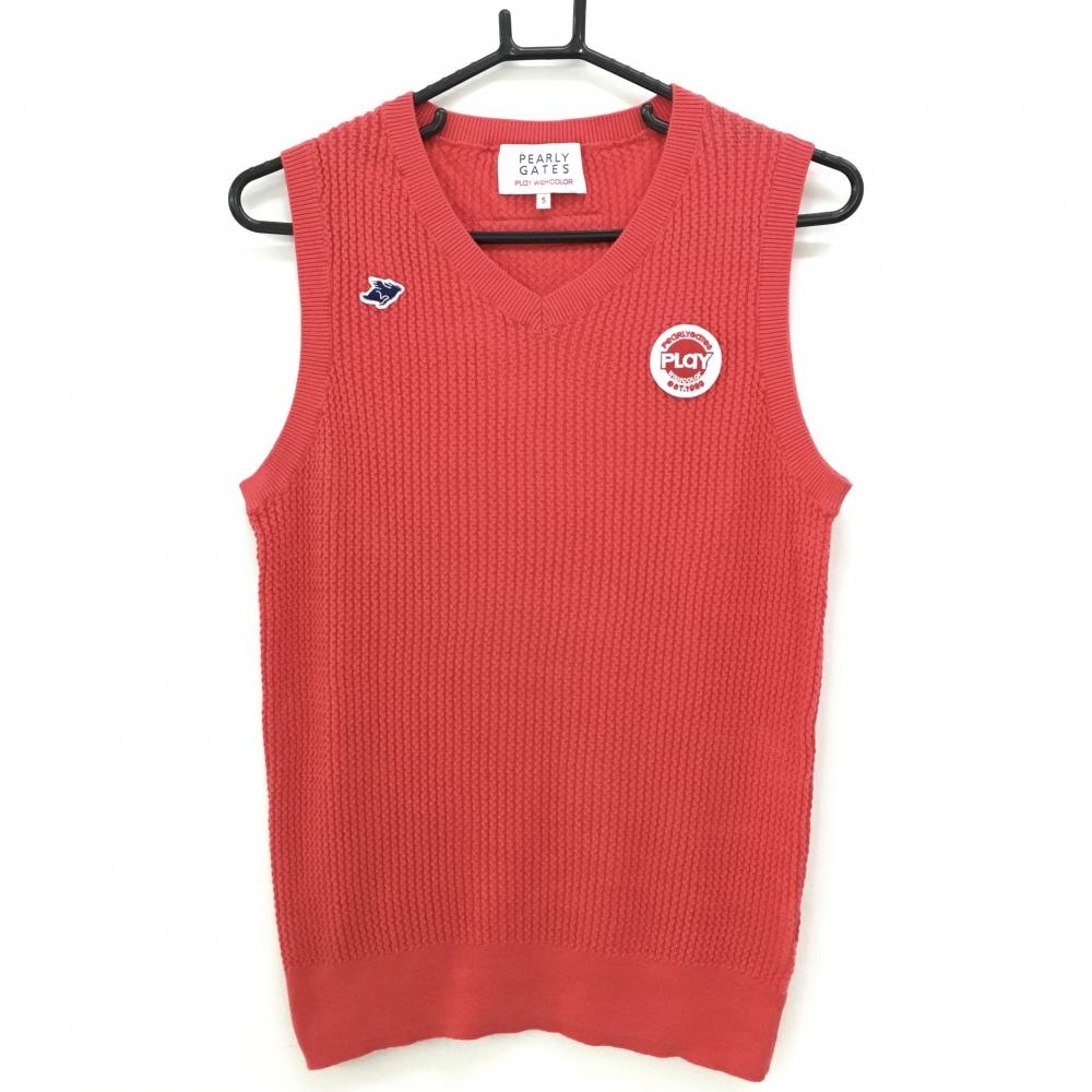 【超美品】パーリーゲイツ ニットベスト オレンジレッド Vネック ウール メンズ 5(L) ゴルフウェア PEARLY GATES