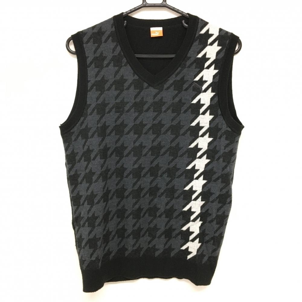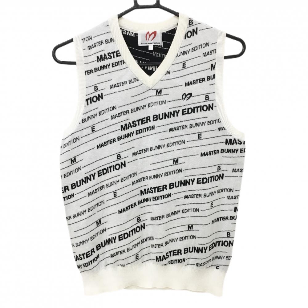 マスターバニー ニットベスト 黒×白 千鳥格子 コットン混 メンズ 4(M) ゴルフウェア MASTER BUNNY EDITION
