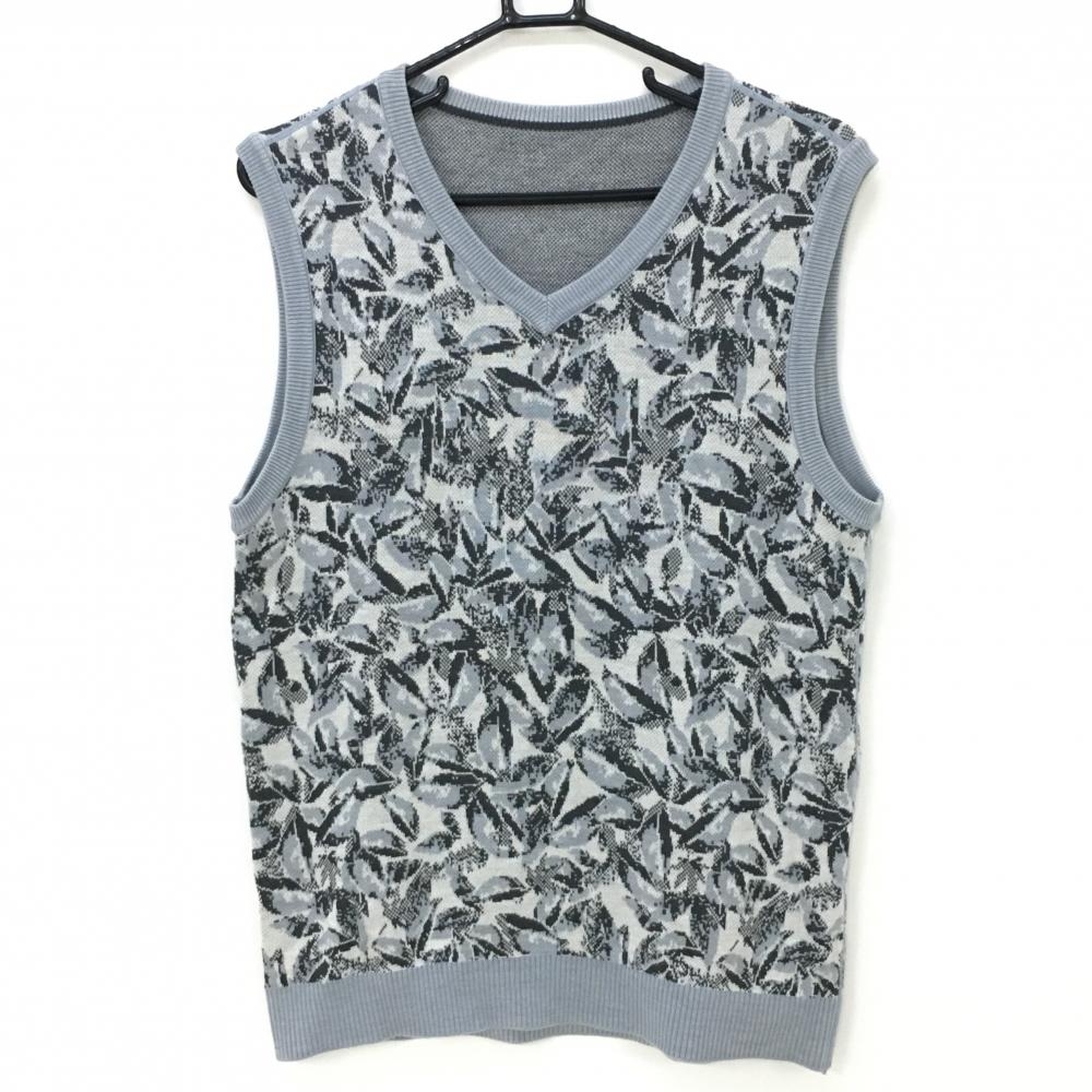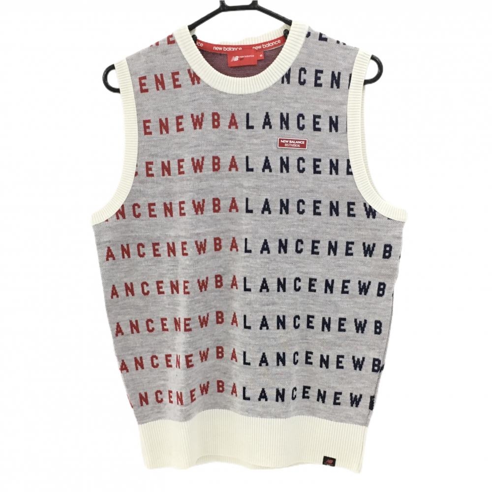 【超美品】ニューバランスゴルフ ベスト ブルーグレー 凹凸ロゴ Vネック 後ろ織生地 メンズ 5(L) ゴルフウェア New Balance