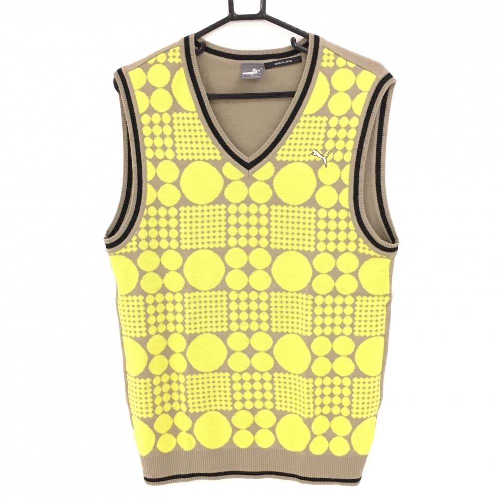 【新品】ルコックゴルフ フード付アウターベスト イエロー×グレー 下部総柄 裏地メッシュ はっ水 メンズ M ゴルフウェア le coq sportif
