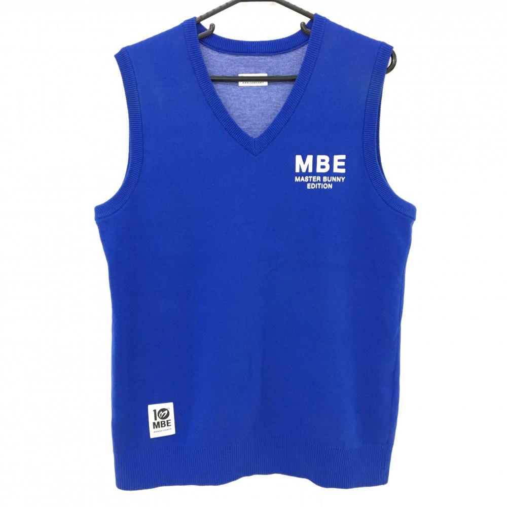 【美品】マスターバニー ニットベスト ネイビー バックロゴ コットン・カシミヤ メンズ 5(L) ゴルフウェア MASTER BUNNY EDITION