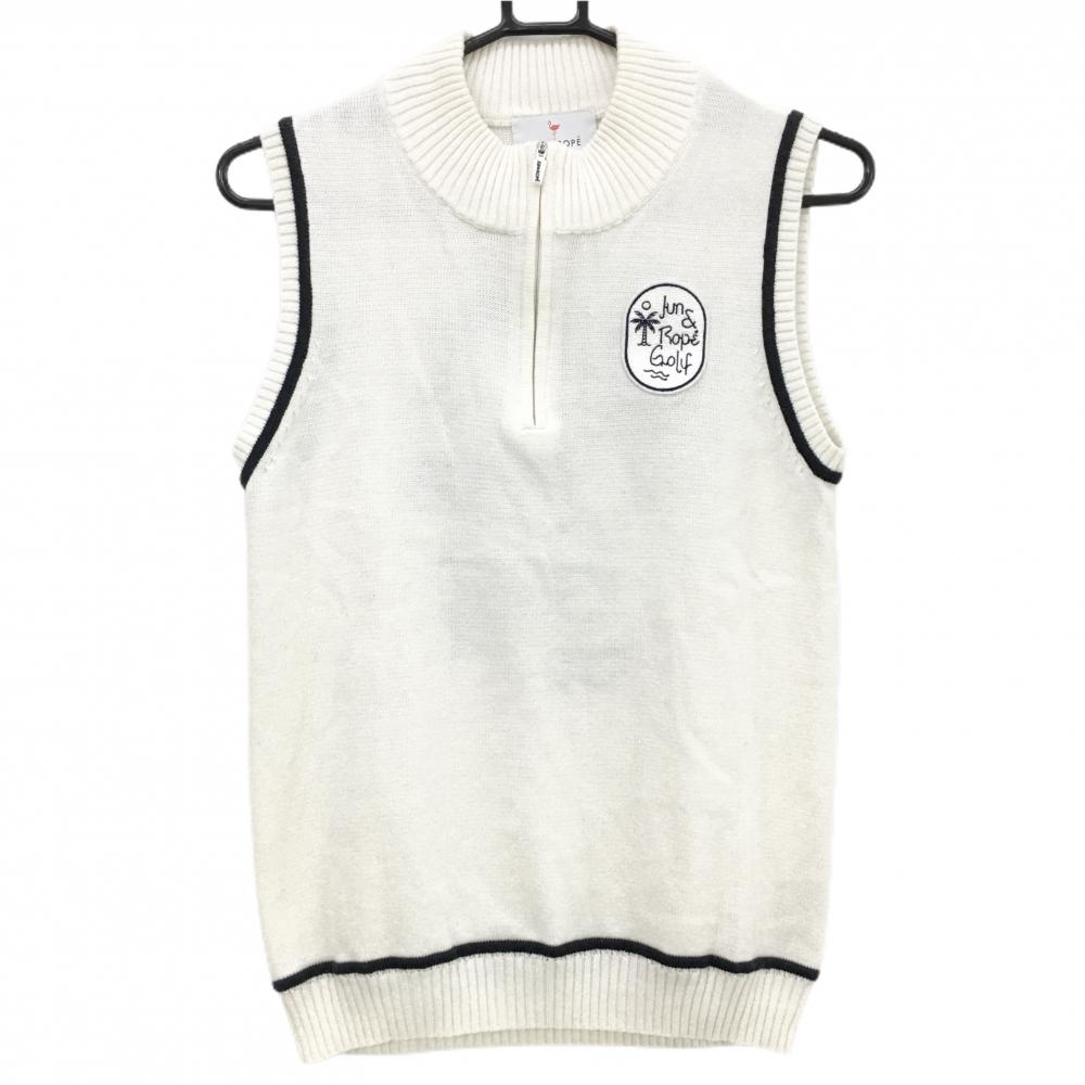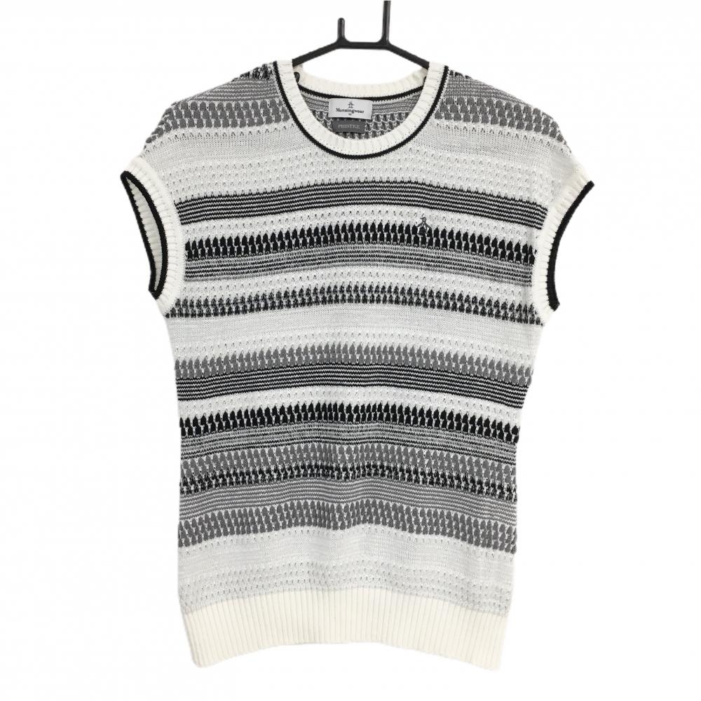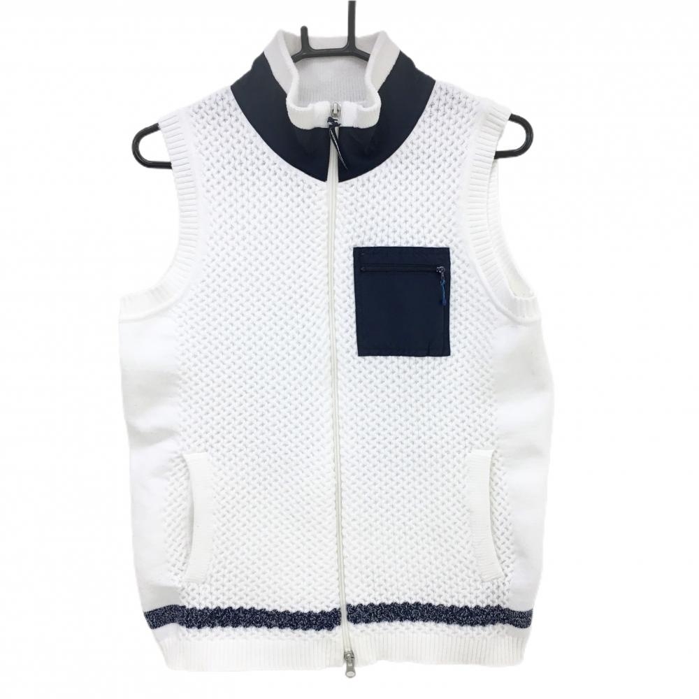 ジャックバニー ニットベスト 白×黒 ネック3ライン コットン混 レディース 2(L) ゴルフウェア Jack Bunny