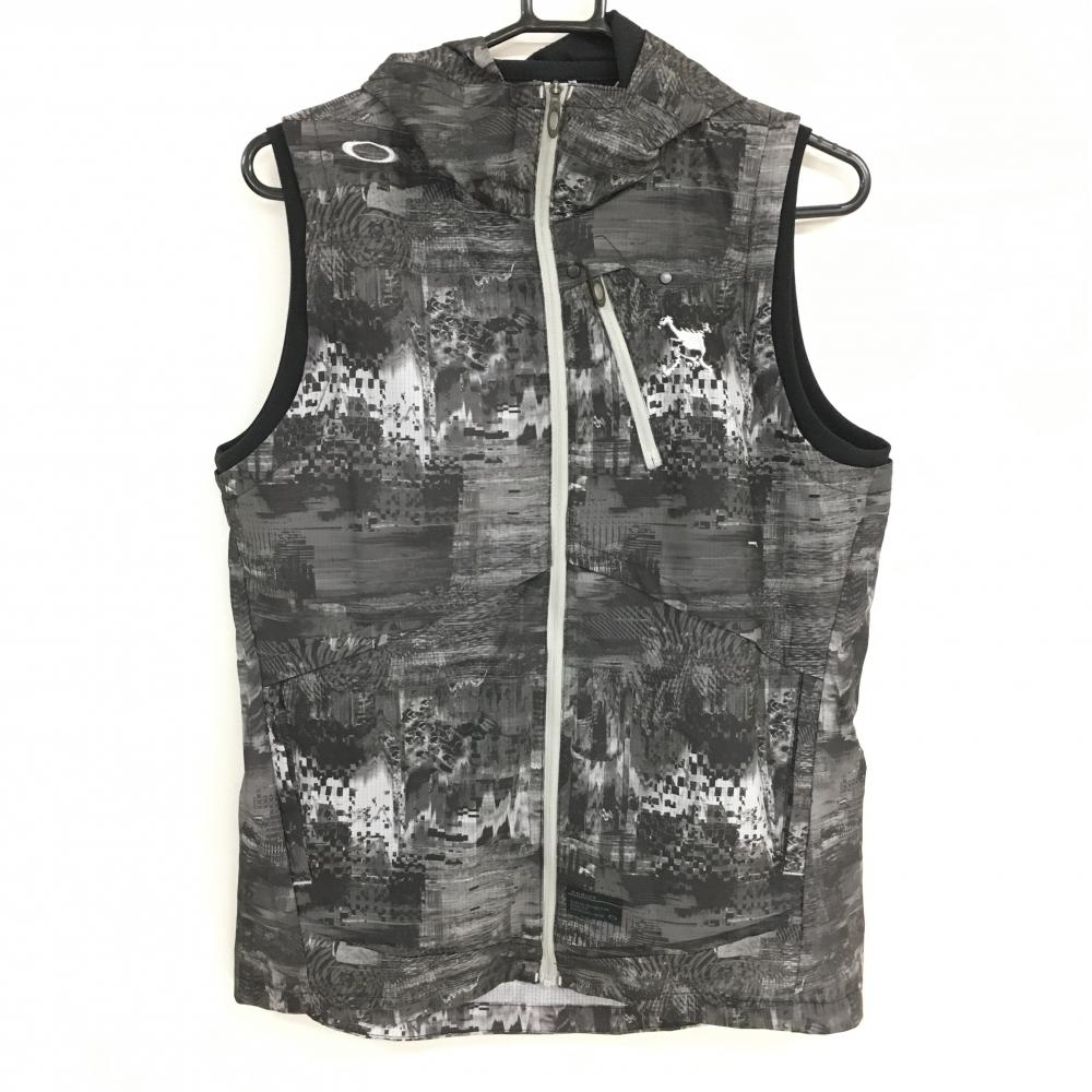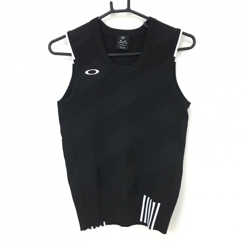 【超美品】オークリー ニットジップベスト 黒×グレー 前総柄 ロゴ刺しゅう ダブルジップ メンズ XL ゴルフウェア Oakley
