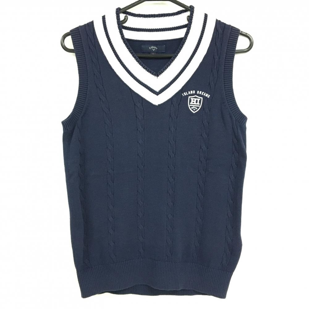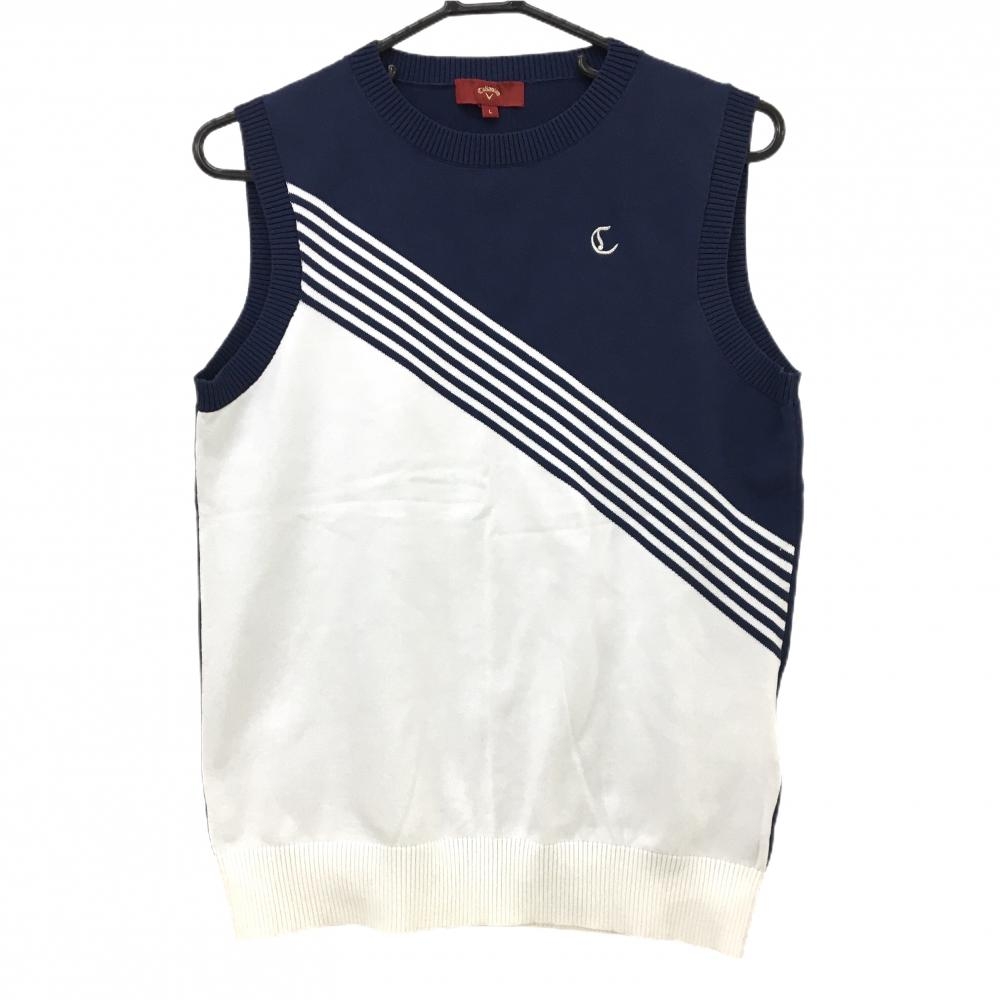 【超美品】キャロウェイ ニットベスト 白×ネイビー フロント英字 ウール混 レディース LL ゴルフウェア Callaway